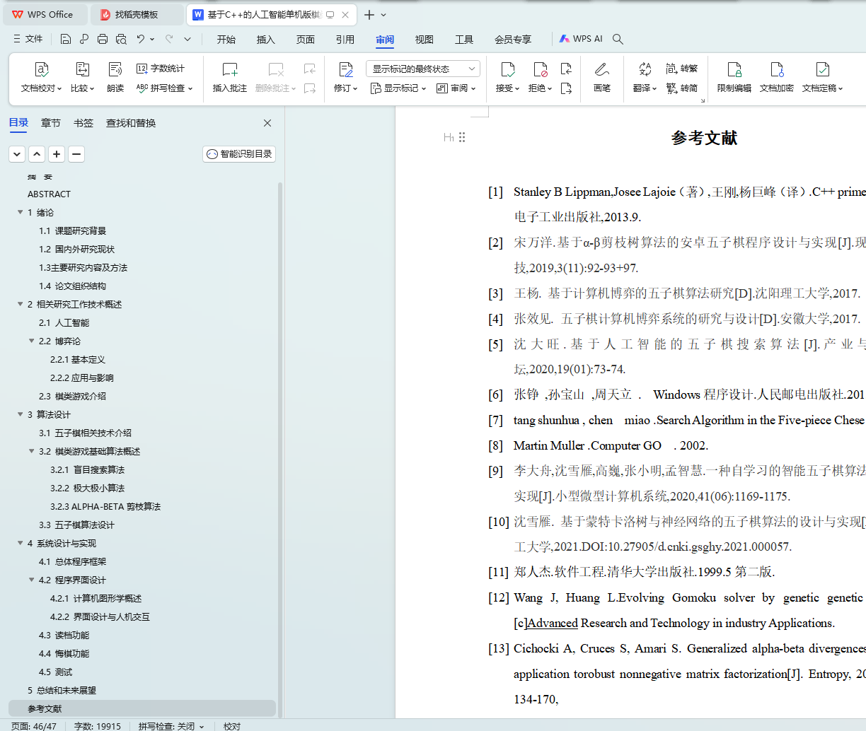 关键词:C++,五子棋,对弈算法