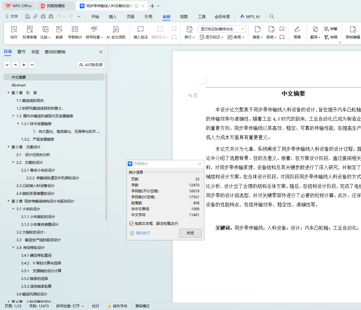 本论文共分为七章,系统阐述了同步带传输线入料设备的设计过程。首先,在绪论中介绍了选题背景、目的及意义。接着,在方案设计阶段,通过查阅相关文献和资料,对同步带传输原理、设备结构及其关键参数进行了深入研究,并制定了合理的机械结构设计方案。在总体设计阶段,对现阶段同步带传输线入料设备的方式进行了对比分析,设计出了合理的结构总体方案。随后,在结构设计阶段,完成了电机的选型、同步带的设计或选型,并对关键零部件进行了必要的校核计算。此外,还详细说明了设备的性能特点,包括传输效率、稳定性、准确性等。