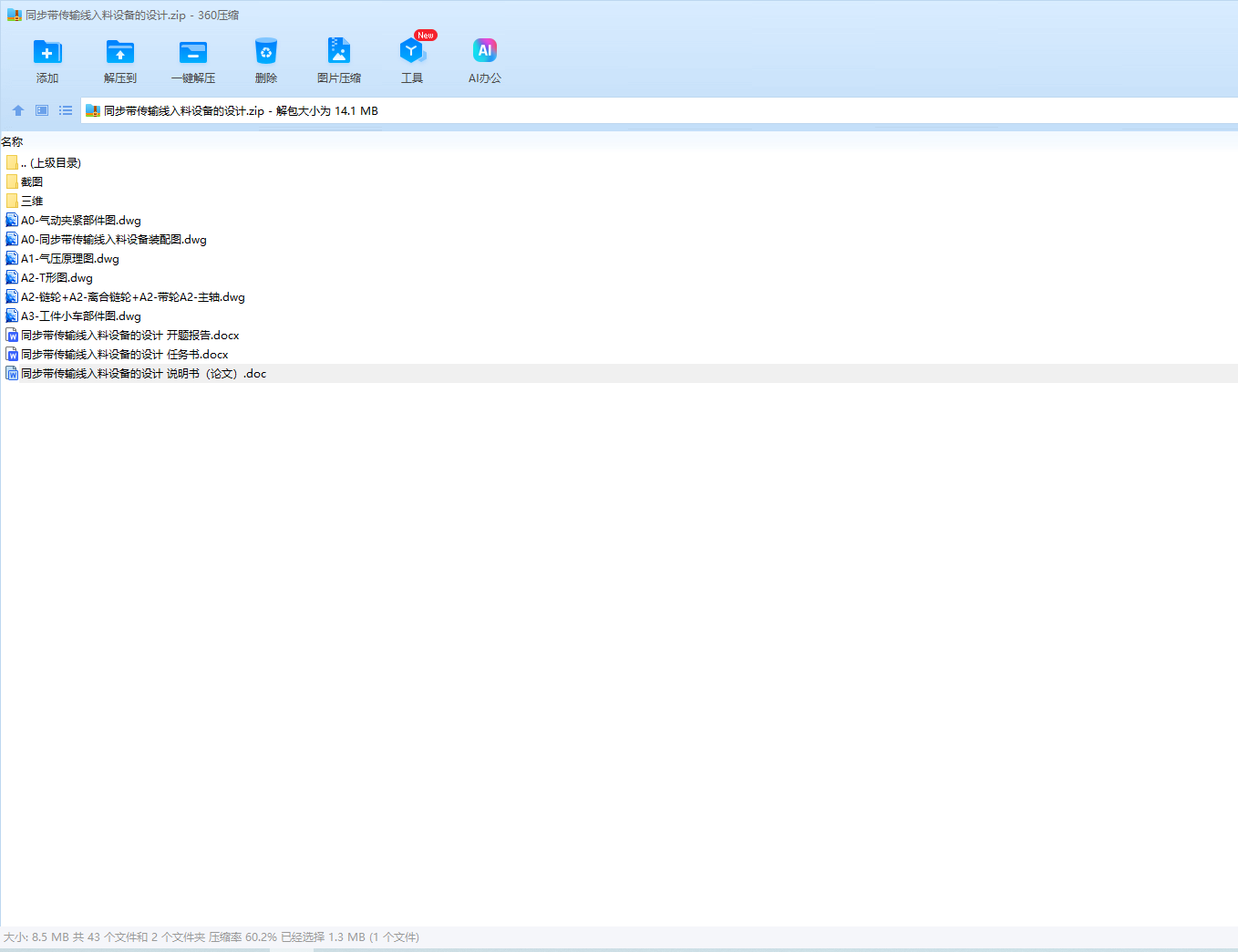 This paper is divided into seven chapters, systematically explaining the design process of synchronous belt transmission line feeding equipment. First, the background, purpose and significance of the topic are introduced in the introduction. Then, in the scheme design stage, through consulting the relevant literature and data, the principle of synchronous belt transmission, equipment structure and its key parameters were deeply studied, and a reasonable mechanical structure design scheme was formulated. In the overall design stage, the mode of the synchronous belt transmission line is analyzed, and a reasonable overall structure scheme is designed. Subsequently, in the structural design stage, the selection of the motor, the design or selection of the synchronous belt was completed, and the necessary check and calculation of the key components was made. In addition, also detail the performance characteristics of the equipment, including transmission efficiency, stability, accuracy and so on.