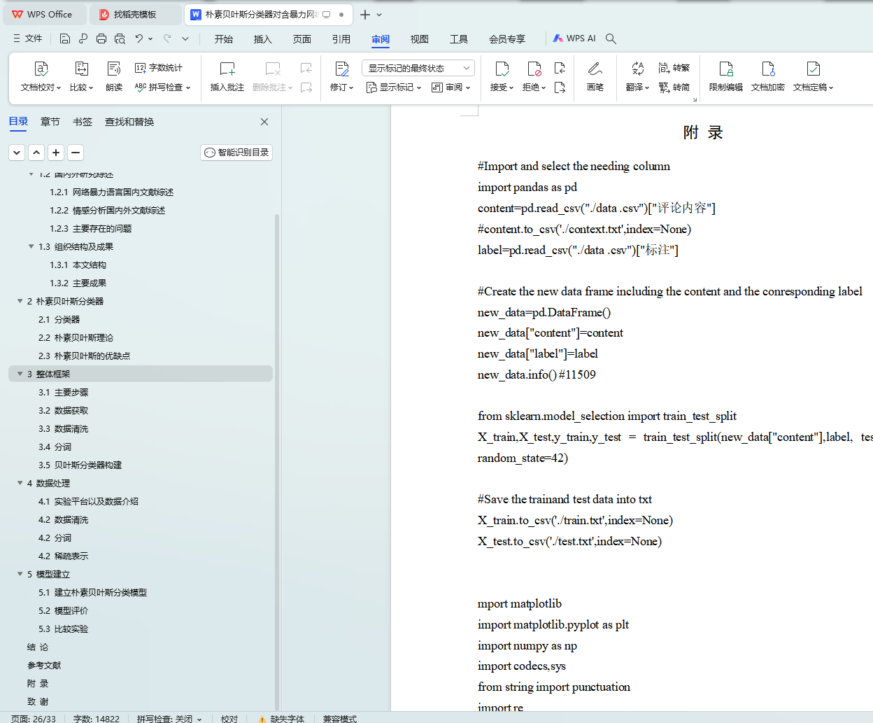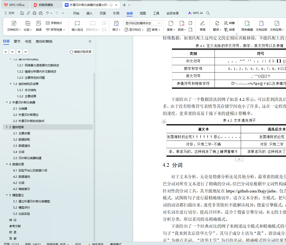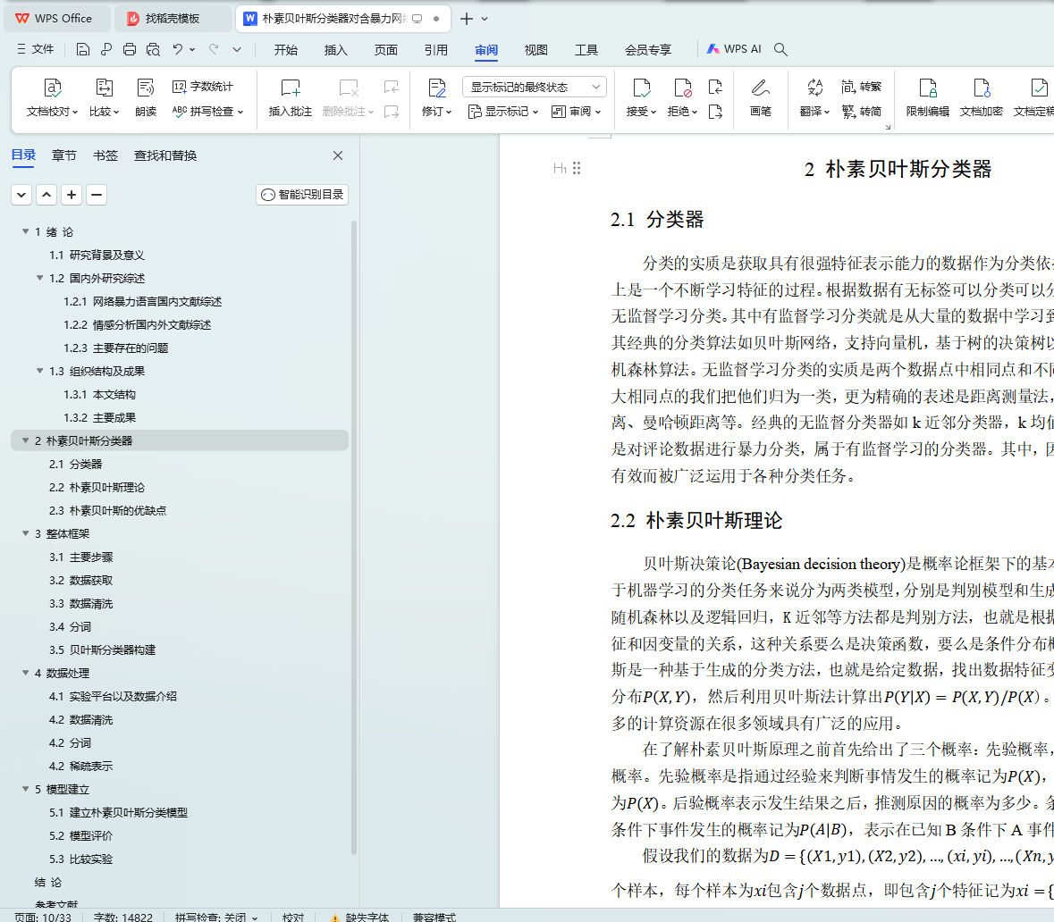 朴素贝叶斯分类器对含暴力网络评论的甄别
