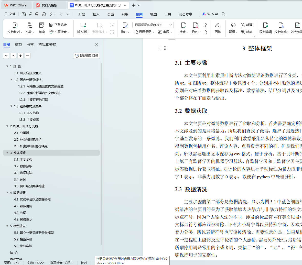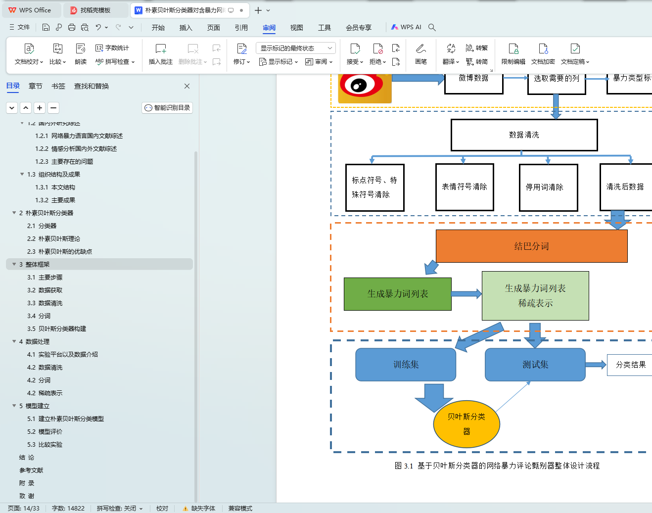 图3.1 基于贝叶斯分类器的网络暴力评论甄别器整体设计流程