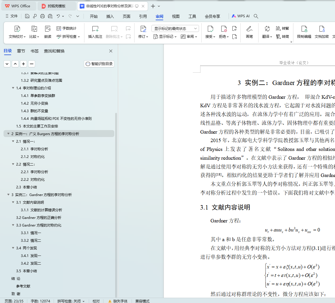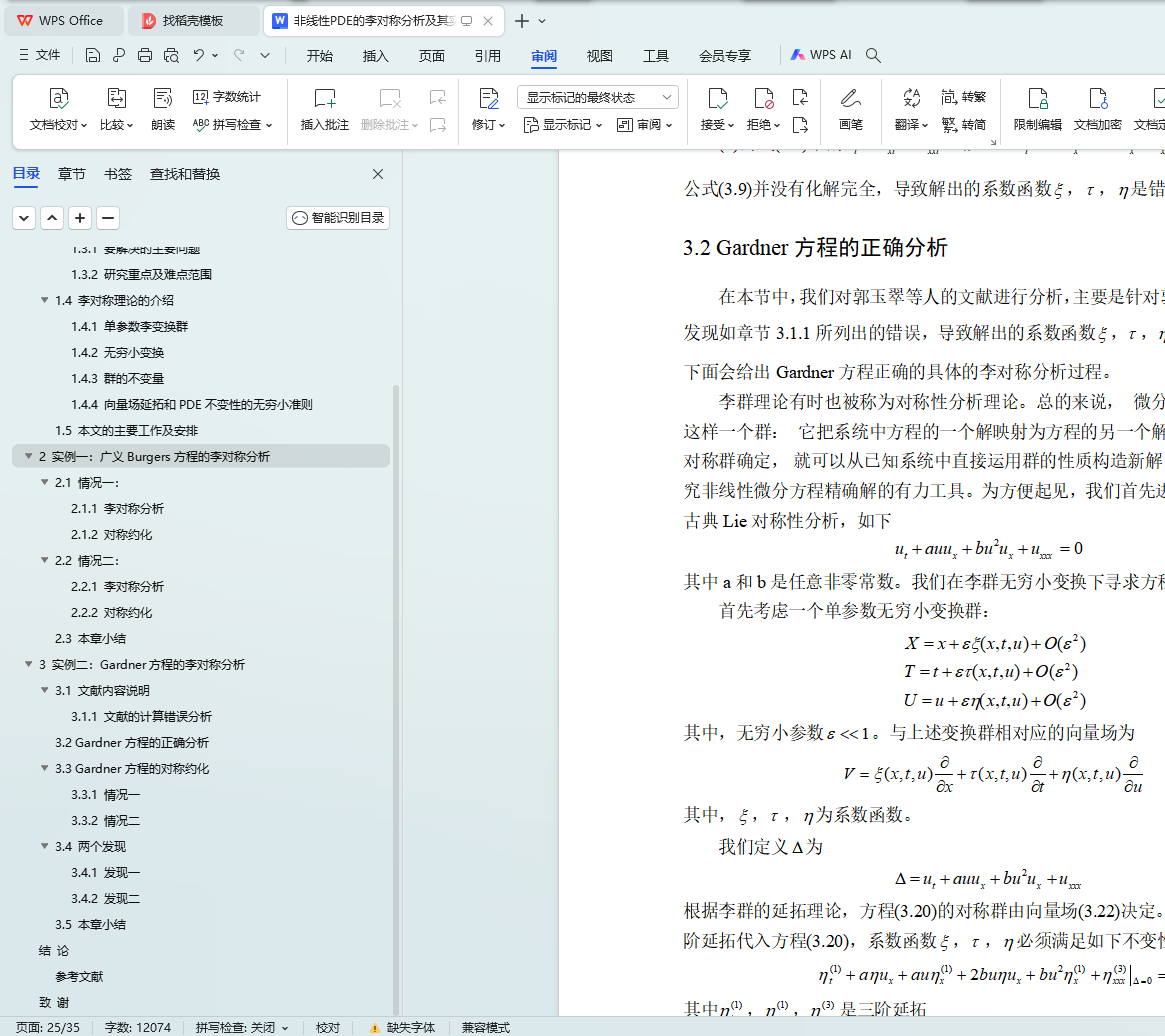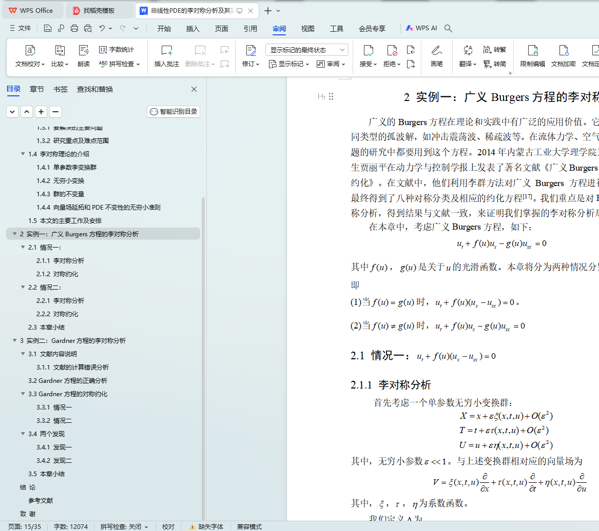 【关键词】 李对称分析,相似约化,广义Burgers方程,Gardner方程