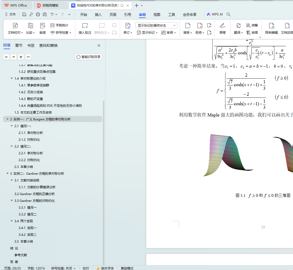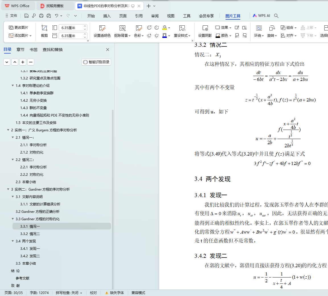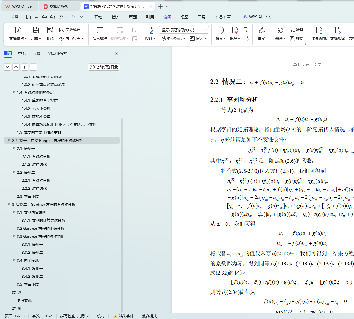 【关键词】 李对称分析,相似约化,广义Burgers方程,Gardner方程