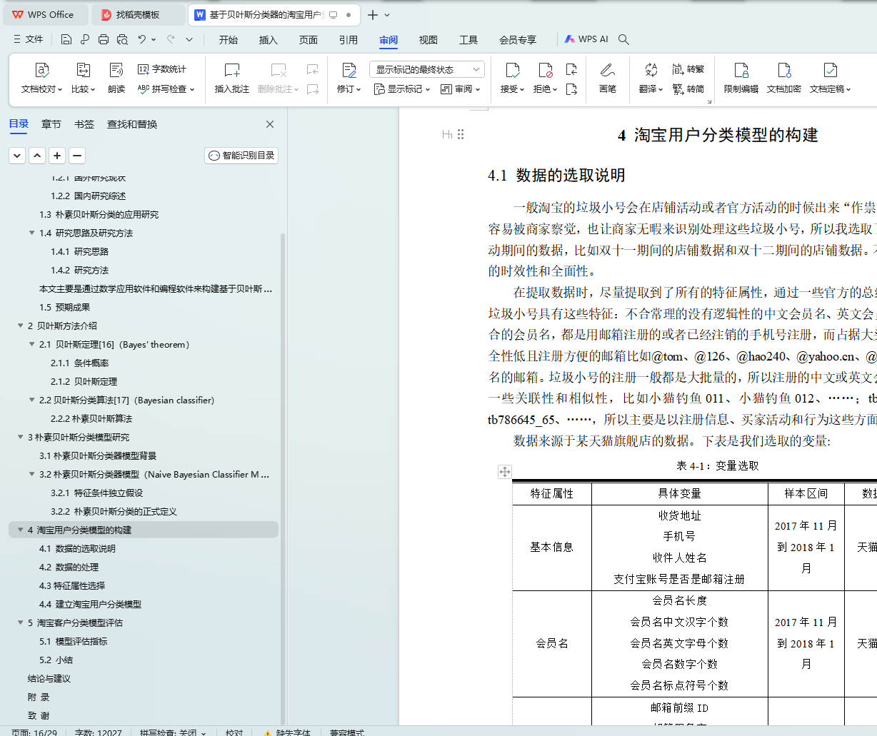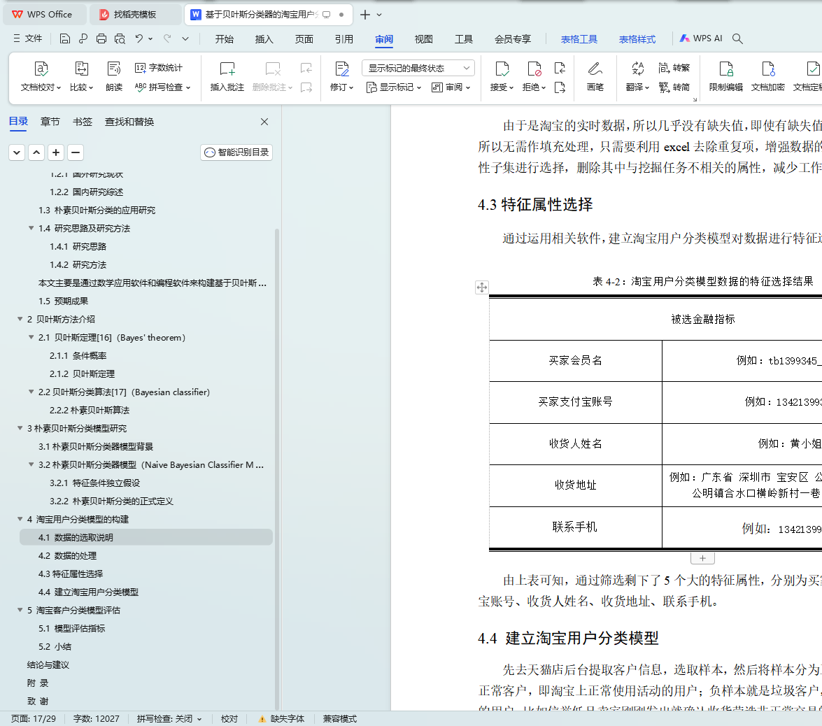 表4-2 淘宝用户分类模型数据的特征选择结果12