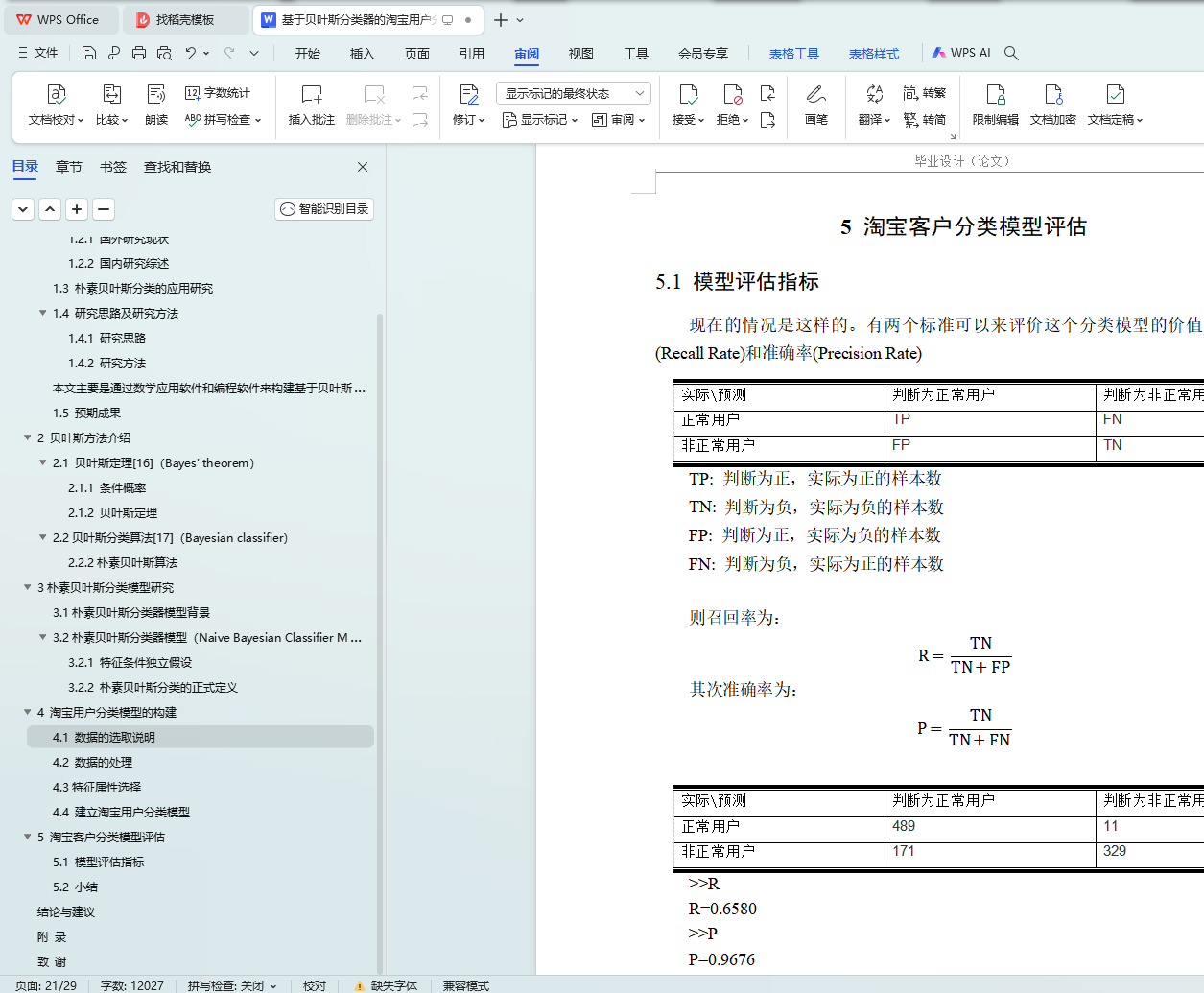 【关键词】贝叶斯分类器,朴素贝叶斯,用户分类模型,召回率,准确率。