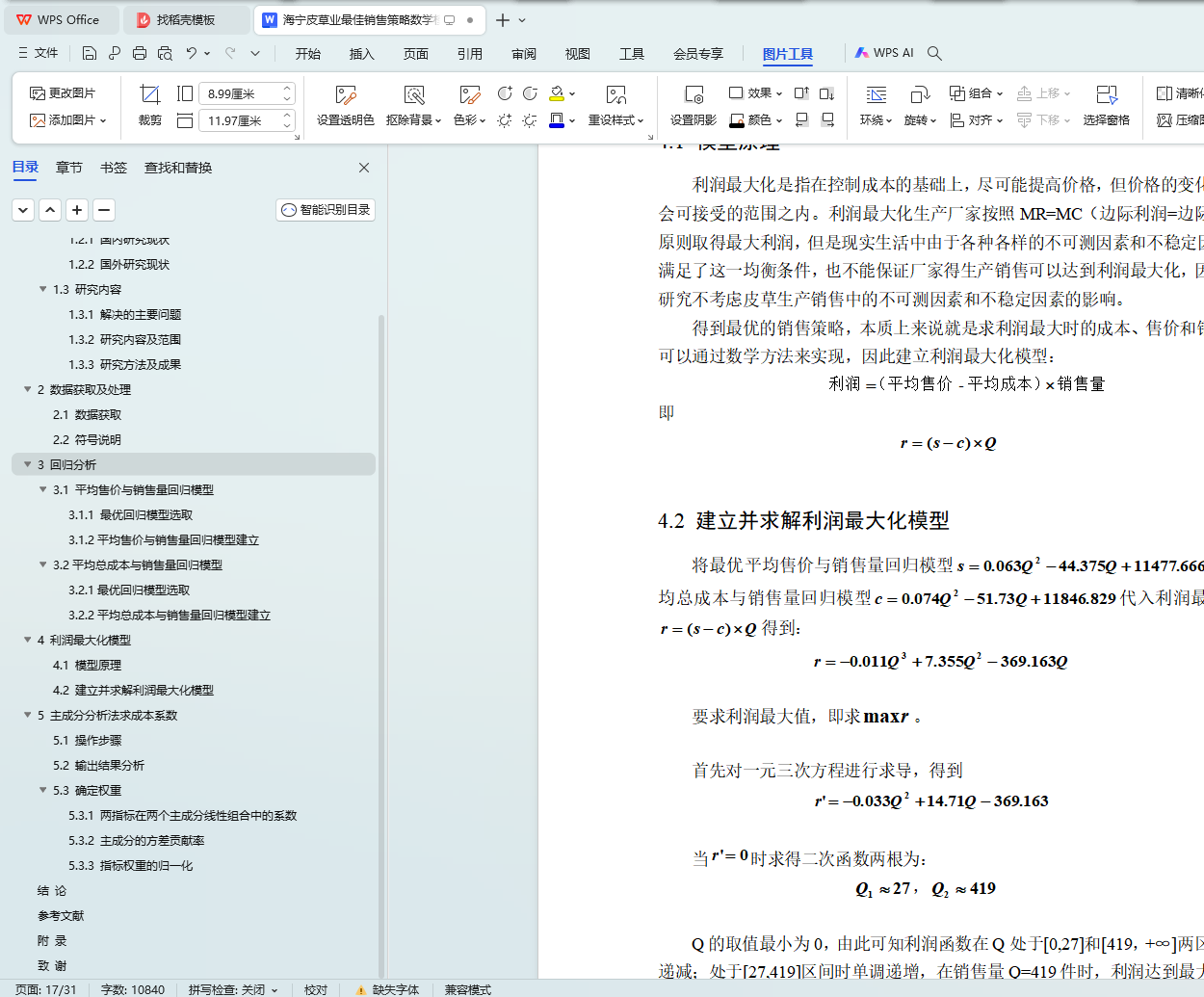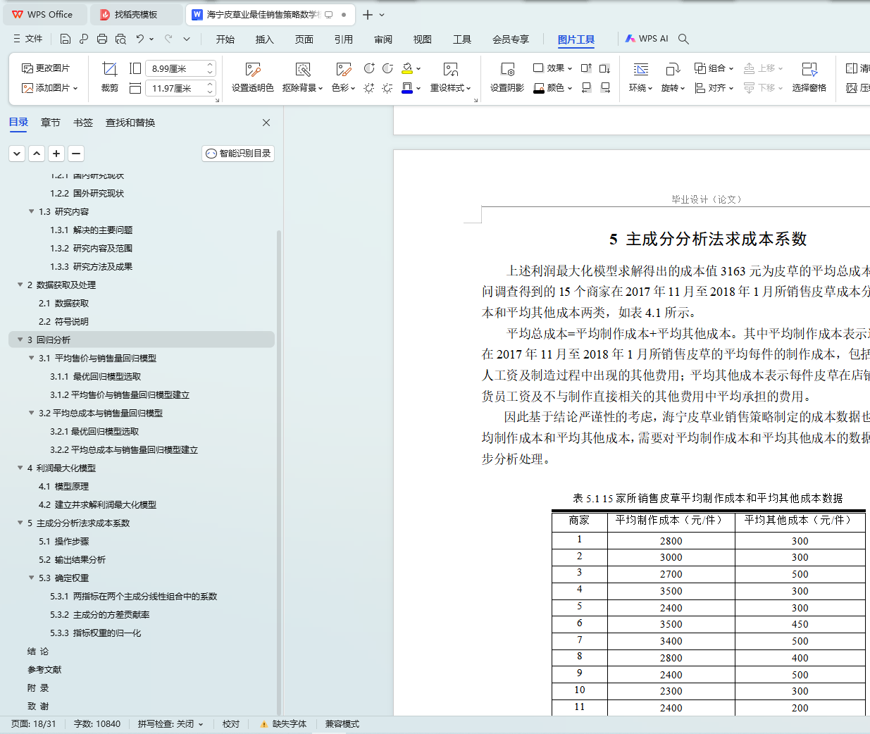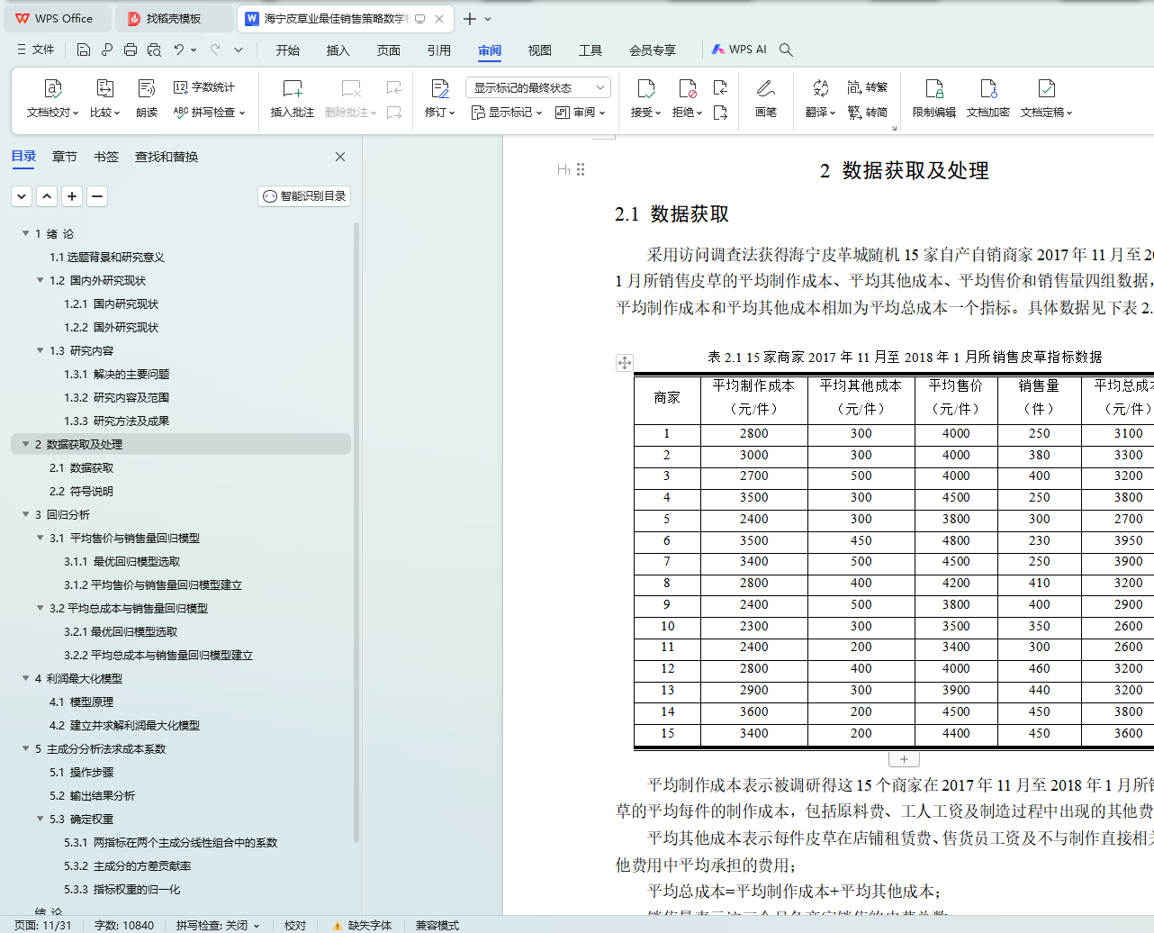 本文首先采用访问调查法获得海宁皮草各自产自销商家2017年11月至2018年1月所销售皮草的平均制作成本、平均其他成本、平均售价和销售量四个指标数据,再用SPSS回归分析得出平均总成本与销售量的函数关系式,平均售价与销售量的函数关系式,利用关系式整合回归得到的两个函数,分析求解得到的一元三次利润函数,对其求最大值,同时也能得出利润最大时的平均总成本、平均售价和销售量数据。最后用主成分分析法求成本系数值,确定平均制作成本与平均其他成本在平均总成本中的权重,对应得到平均制作成本和平均其他成本数据。从而能给海宁自产自销皮草厂家合适的销售策略。