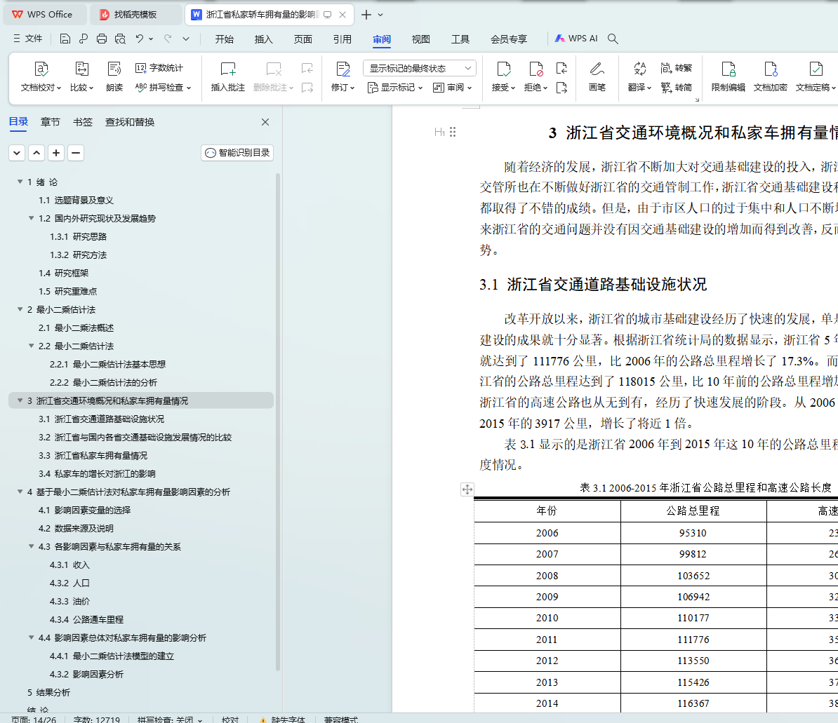 表3.1 2006-2015年浙江省公路总里程和高速公路长度