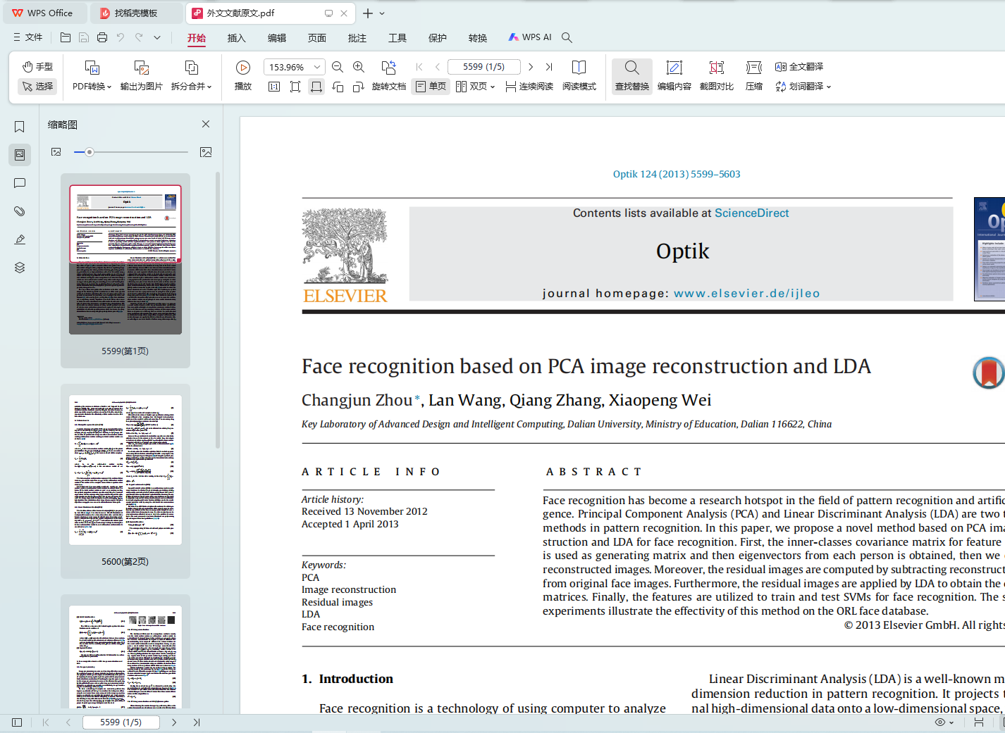 结合PCA与LDA算法的人脸识别研究