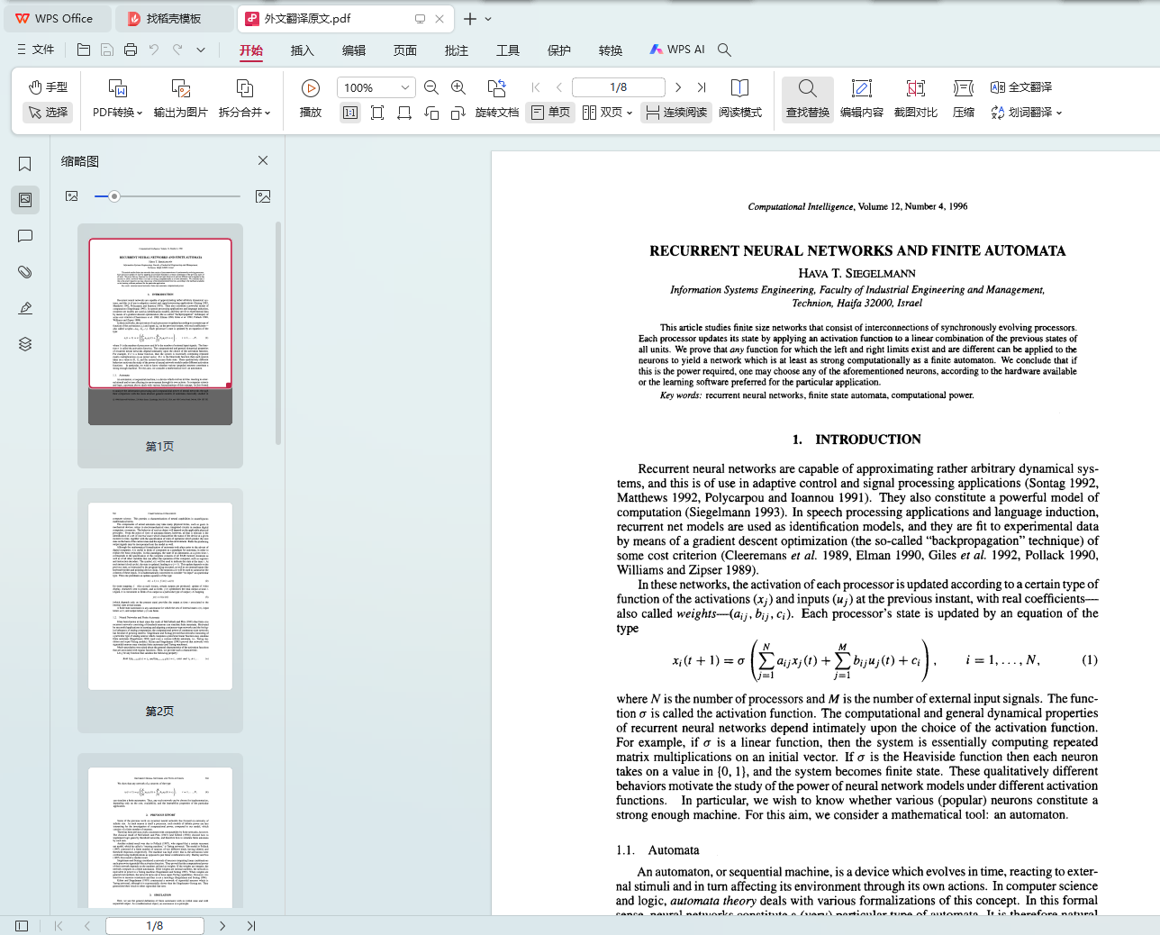 【Key Words】 recurrent neural networks,Mealy machine,BP algorithm,Matlab software programming calculation