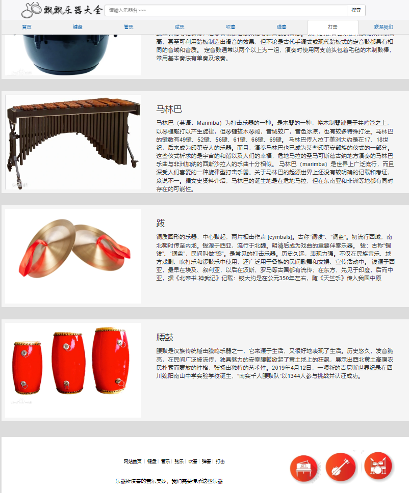 互联网的迅捷发展已经能够影响到我们的日常生活,互联网的发展也能让查询资料变得更加便捷,乐器种类众多,又悠久的乐器,也有新兴的乐器,介绍各种乐器也变得很有必要。