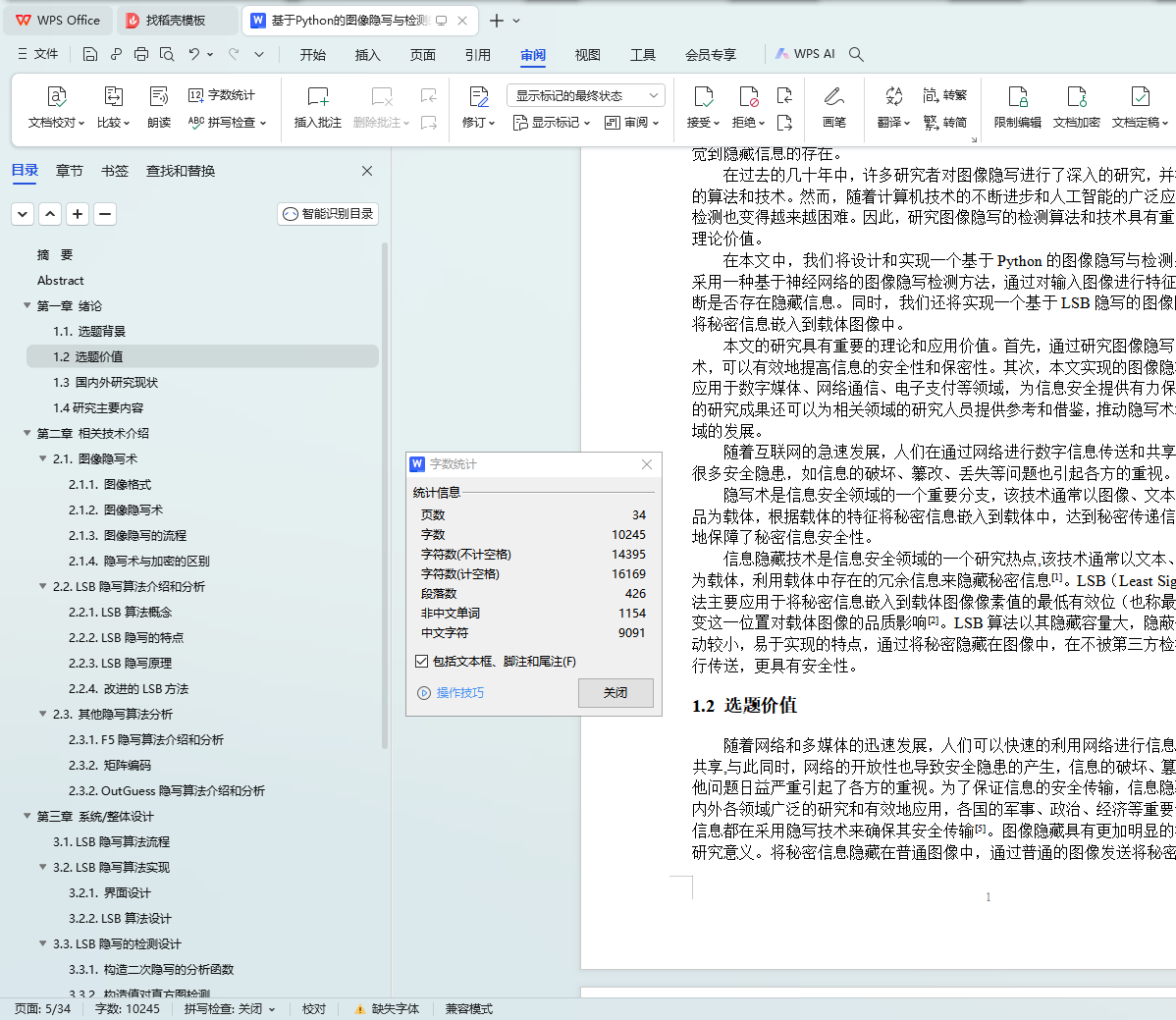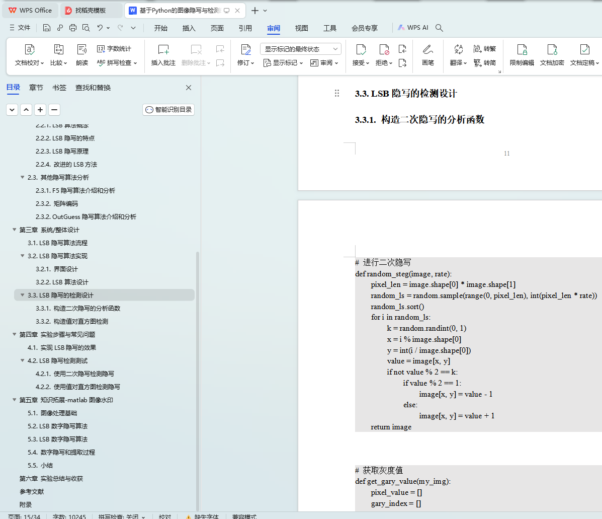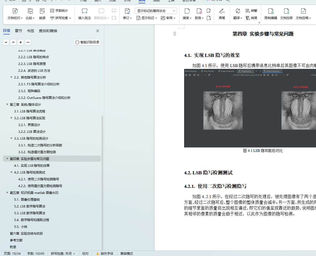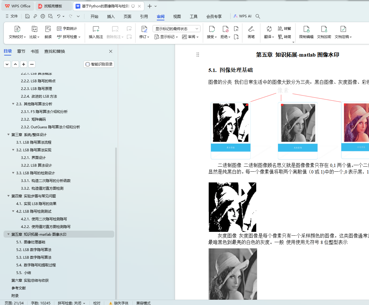 本论文研究了基于Python的图像隐写与检测的设计实现。首先,我们介绍了图像隐写技术的背景和意义,以及现有的图像隐写和检测方法。然后,我们详细介绍了我们的研究内容和贡献,包括图像隐写算法、图像隐写检测算法、系统界面和核心代码的实现。通过实验验证,我们的方法可以有效地实现图像的隐写和检测,同时具有良好的隐蔽性和可靠性。