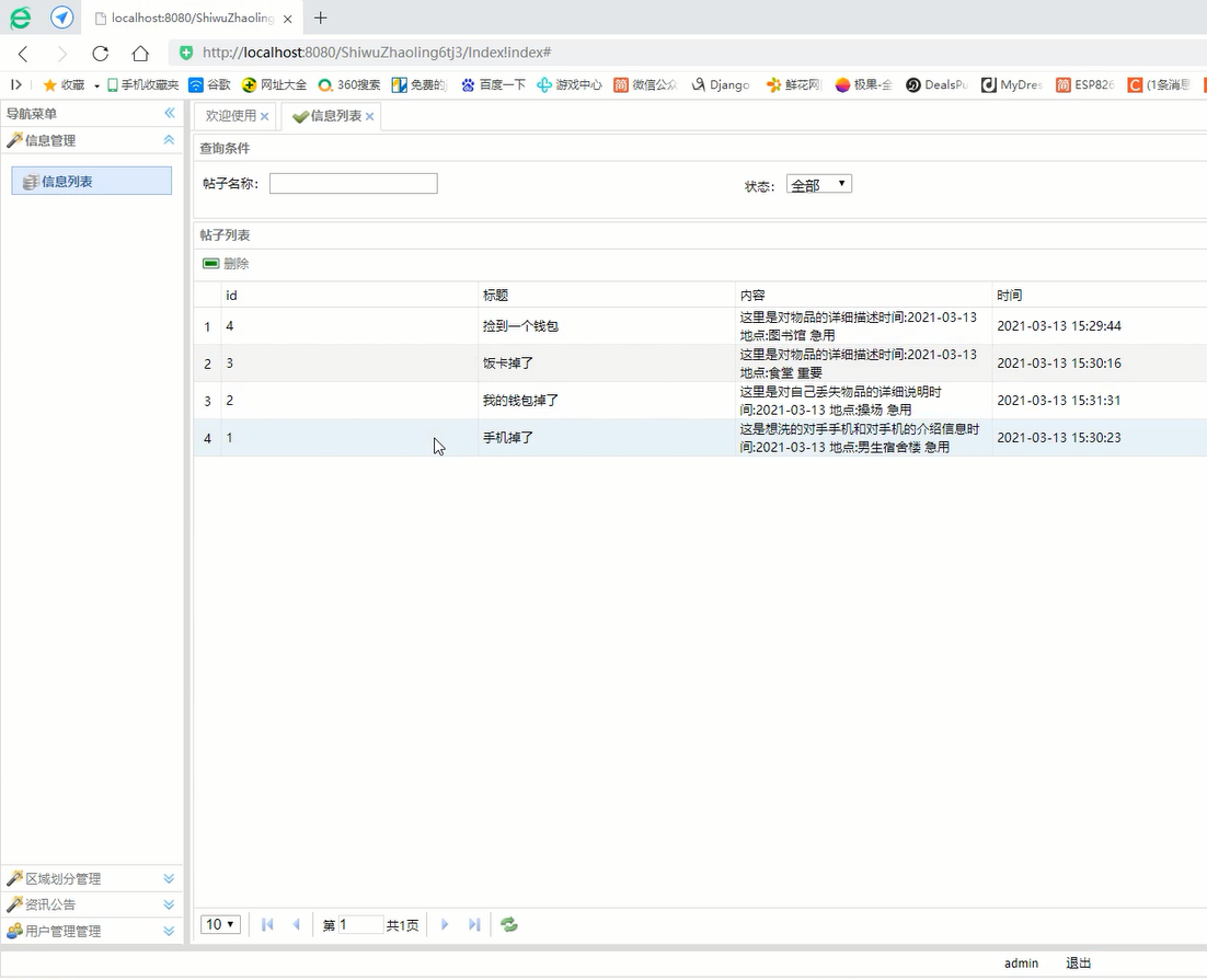 5.2. 失物招领信息界面