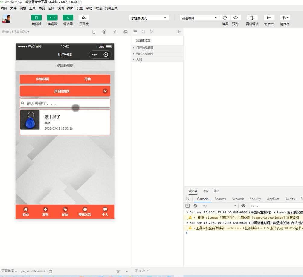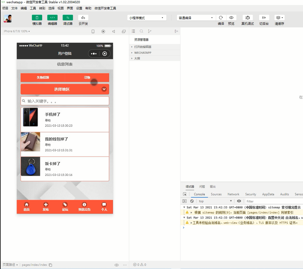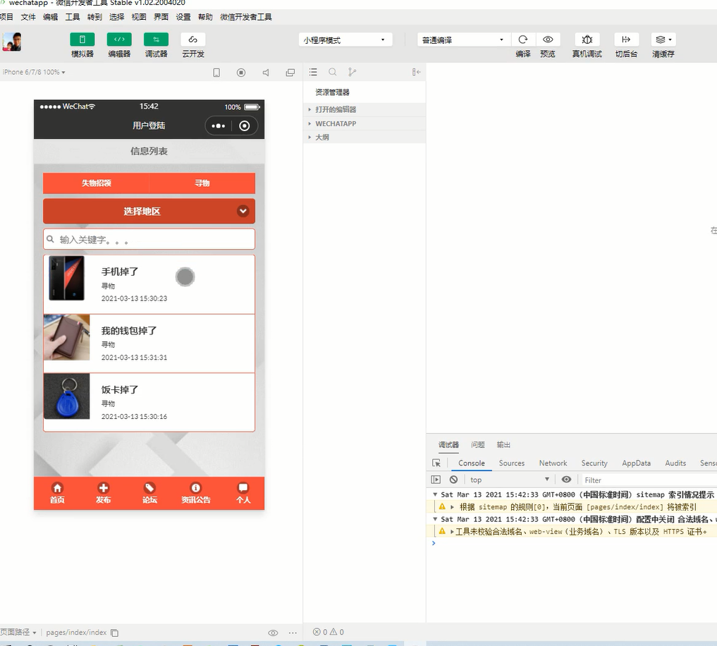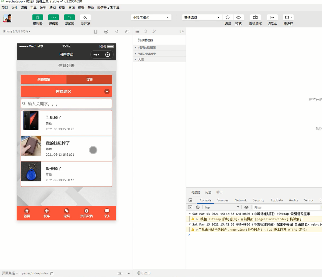 Key words: campus lost and found; small program; JavaWeb; MySQL; Eclipse; Tomcat; wechat web developer tool