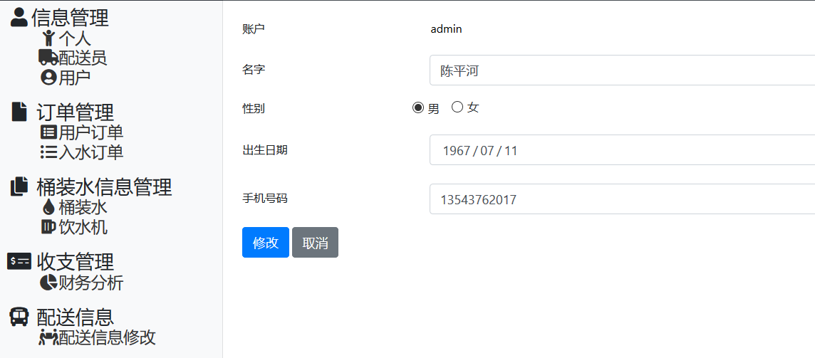 This thesis intends to develop a barrel water management system with simple functions and simple interface, which can automatically plan the optimal distribution route while assisting the distribution staff in order to distribute the orders automatically, and visually display the financial expenditure status within a specified time. The server of this system is based on Spring Boot's SSM framework, and uses technologies such as Ajax and WebSocket to respond to the user's order request and the dispatcher's order allocation in time.
