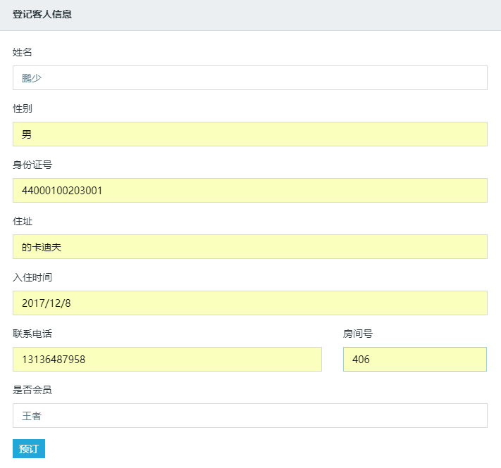 6.2.7 登记入住界面