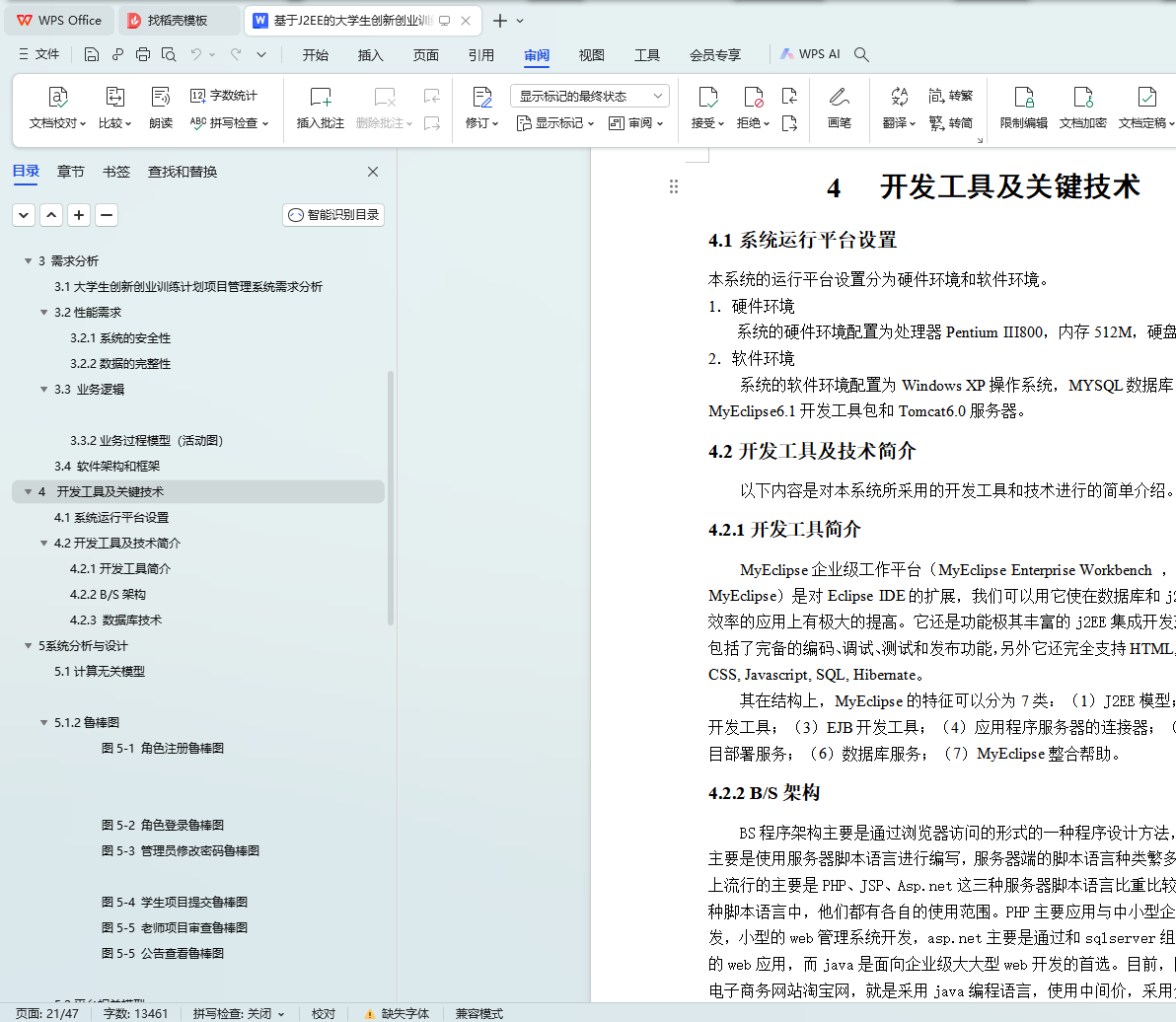 The management system uses J2EE technology to develop, uses Mysql relational database to store information, uses Myeclipse development environment, and uses Tomcat6.0 as a web container to develop a project management system based on BS architecture.
