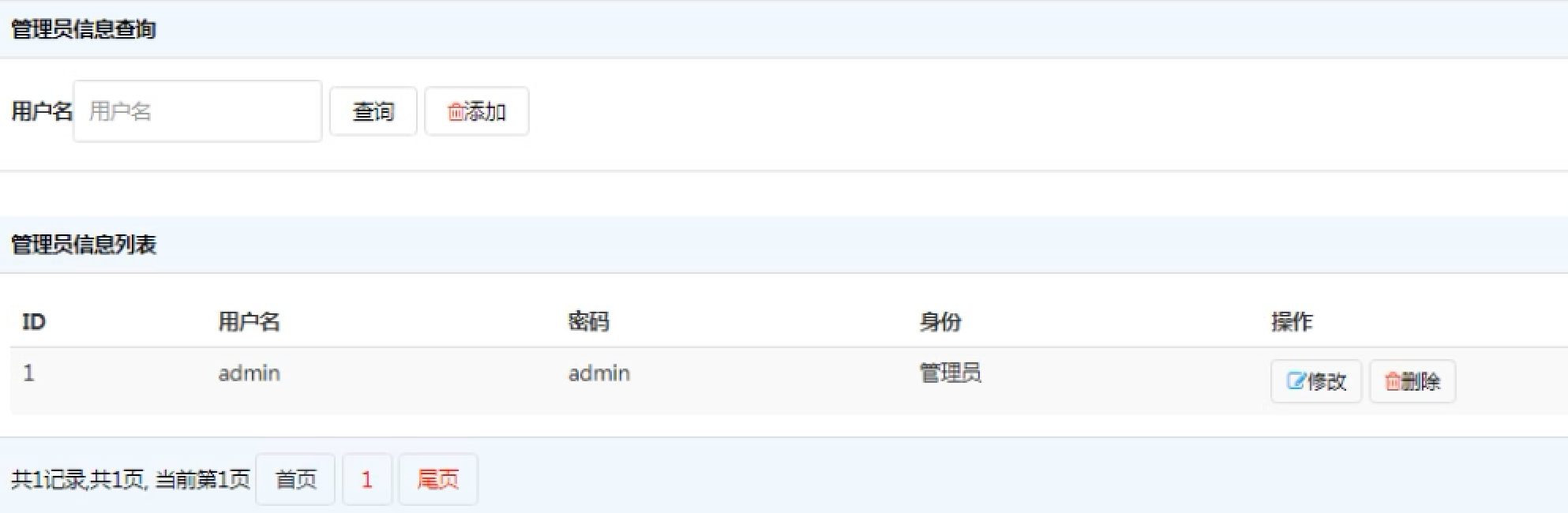 6.2.1管理员信息管理模块
