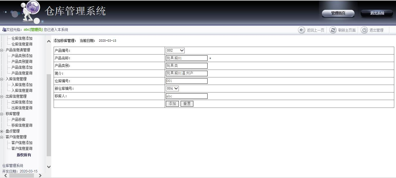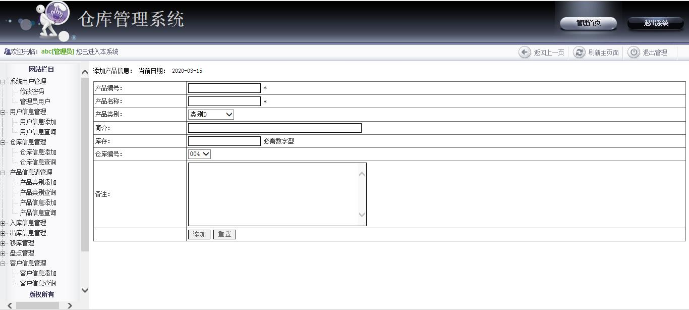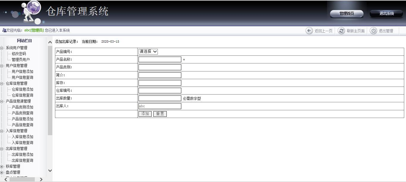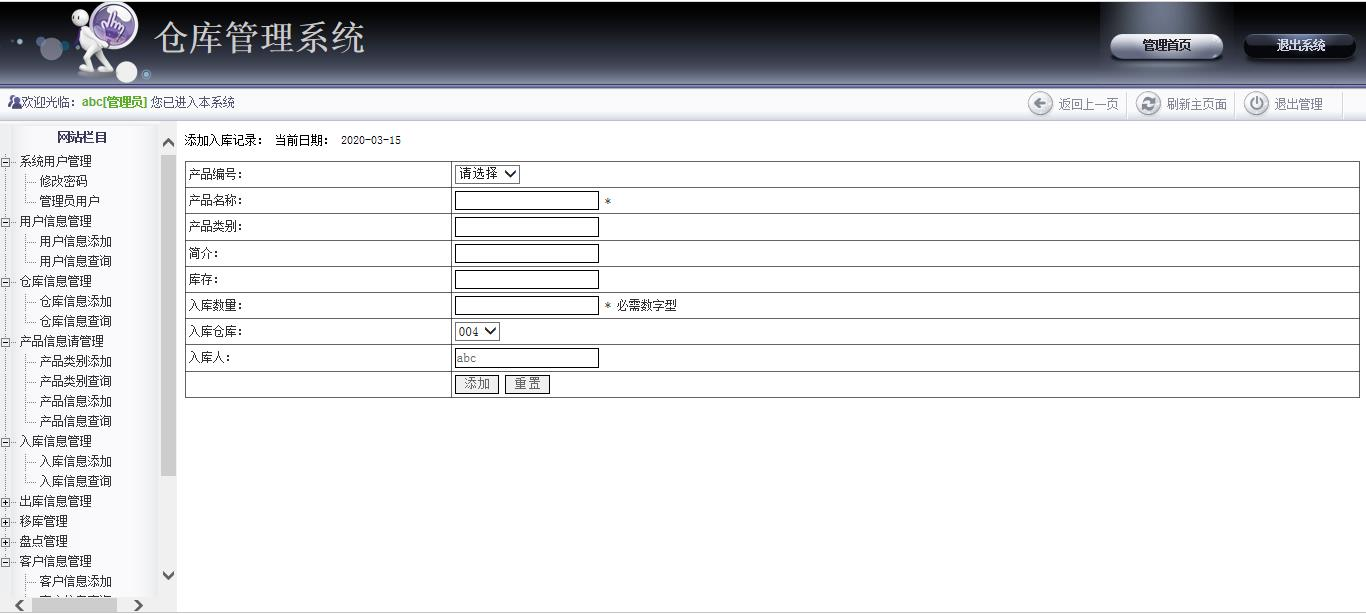 With the rapid development of information technology, computer applications have entered thousands of families. With the increase of the quantity of goods, there are many problems in the inventory management. The amount of processing of commodity data is increasing rapidly, and the original manual management model is not suitable for this form. The use of computers can accomplish data collection, processing and analysis, reducing the waste of manpower and resources. The enterprise needs to establish a warehouse management system to provide information management and dynamic management for the enterprise commodity management and improve the quality and efficiency of commodity management.