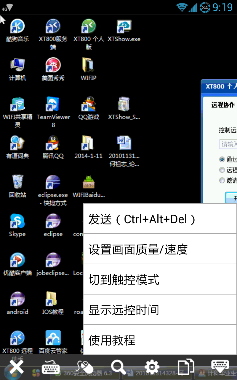 本论文拟开发一款同时支持VNC(Virtual Network Computer)协议、PPP(Point to Point Protocol)协议的远程控制管理系统,利用HTTP、XMPP(Extensible Messaging and Presence Protocol)等通信协议,实现Android手机或平板对远程计算机的远程操作和远程文件的管理。例如:查看远程计算机的实时画面、实现Ctrl、Alt、Windows等特殊键和鼠标的左键、右键、拖放、滚轮、缩放的指令发送,文件的打开、新建、删除等各种操作。