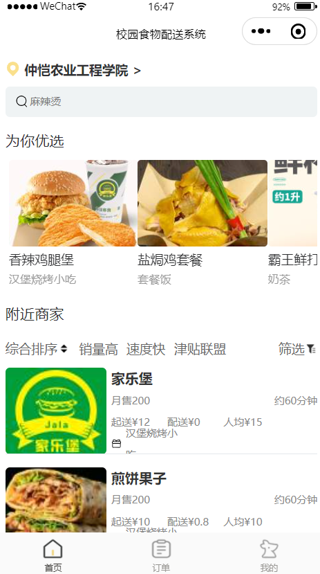 近年来随着互联网的不断发展以及人们逐渐崇尚便捷式生活,外卖的使用率逐渐提高,以便人们达到足不出户而又能吃到美食的效果。虽然市面上不乏“美团”“饿了么”等等的一些外卖软件,但针对校内的老师以及学生等用户全体,校外的外卖相对来讲安全性就没有校内食堂那么高,目前也缺乏一款针对校园内需求的食物配送软件。本项目拟开发的基于微信小程序的校园食物配送系统采用了uni-app框架作为前端技术,微信小程序作为运行环境,Node.js作为后台管理技术。该系统面向广大学生,提供了用户点餐、商家接收订单、出餐等功能,以实现学生快捷方便地获取到安全健康的餐品。该系统的开发对于提高校园餐饮服务质量,满足学生日常生活需求,具有非常重要的意义。通过技术手段,提高学生的就餐体验,缩短学生等待时间,减轻学生的就餐压力,是本项目的最终目标。