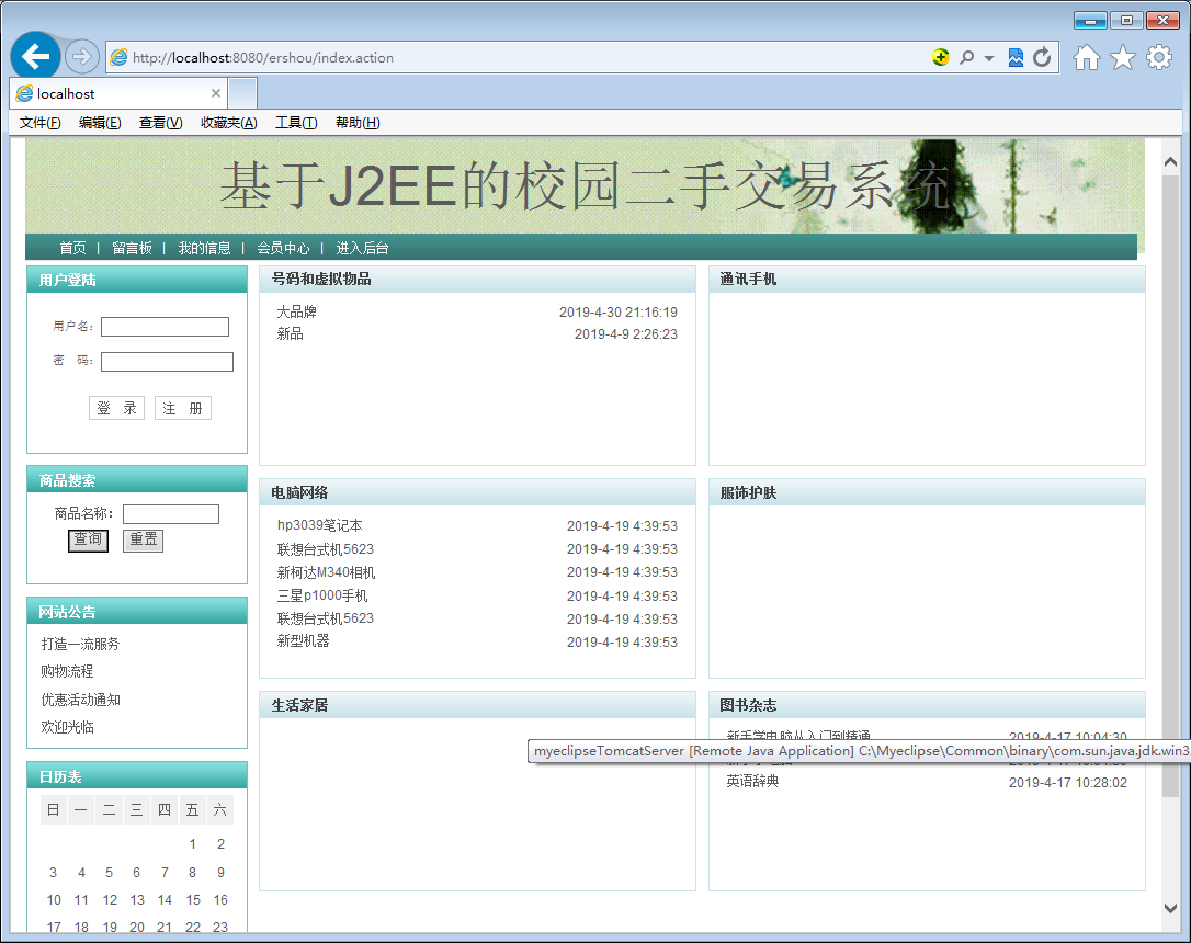 The second-hand commodity trading platform introduced in this article is a trading website that serves students at school. Through this website, users can freely sell and purchase commodities, providing students with equal, mutually beneficial, convenient and fast trading space. In addition to solving business communication and information exchange issues, the campus second-hand commodity trading platform can also improve the actual purchasing power of school students, reduce waste, and objectively improve the living standard of college students. Compared with traditional second-hand transactions, online second-hand transactions are more Quick, strong real-time, abundant information, huge development space.