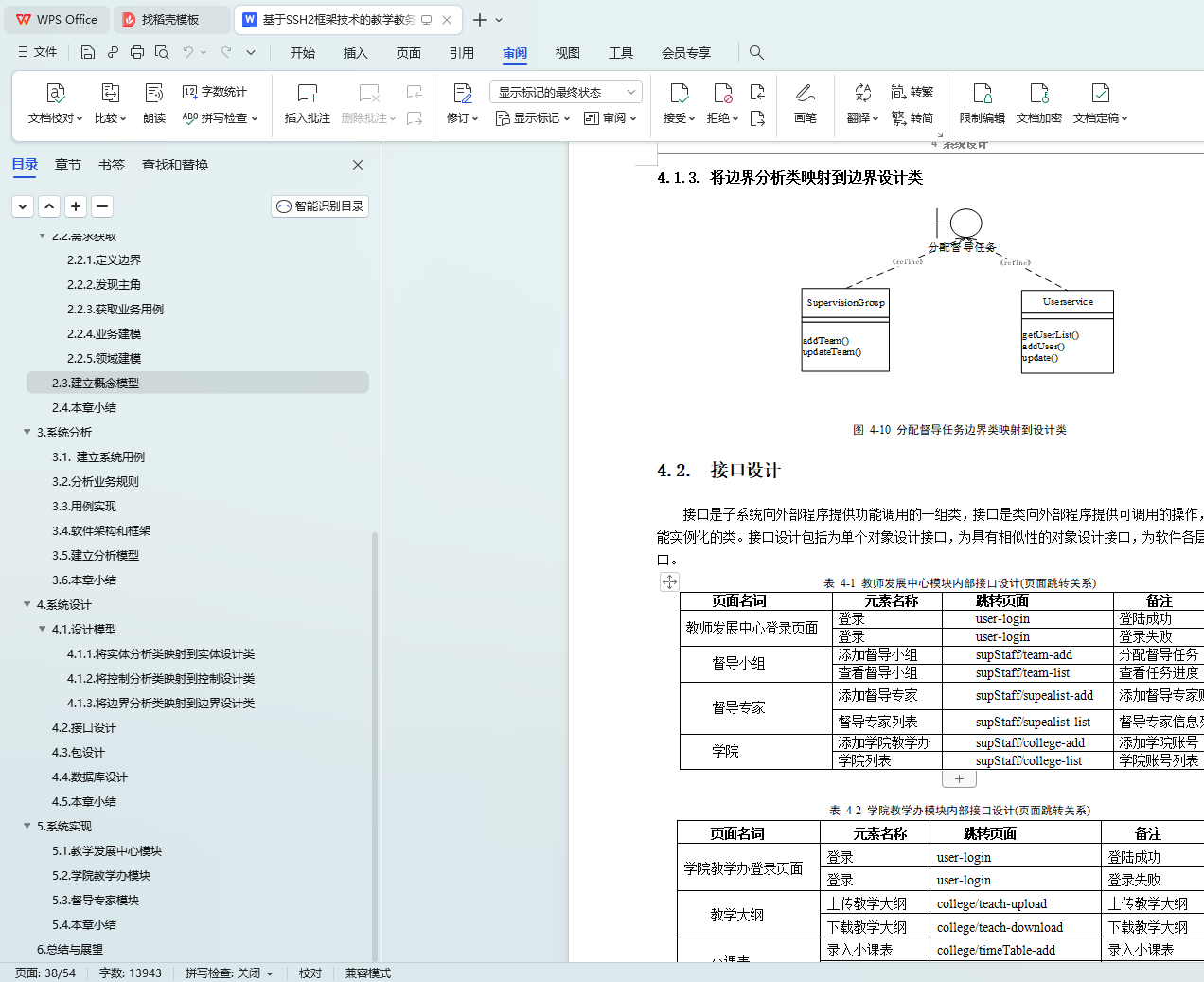 表 4-1 教师发展中心模块内部接口设计(页面跳转关系)
