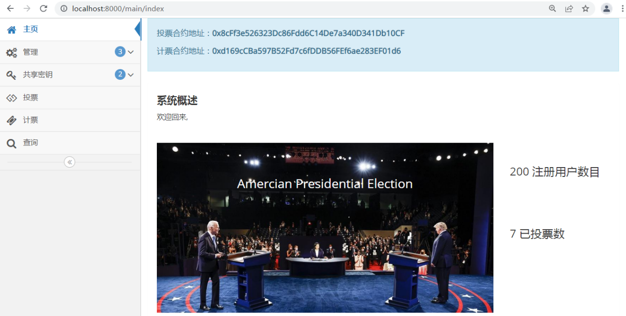 本文设计了一个基于以太坊安全的电子投票系统。首先在python中实现了本方案核心算法,然后在以太坊开发环境完成整个投票系统的搭建与部署,最后通实验数据综合分析系统的性能,并证明所提方案可应用于大规模的选举活动。
