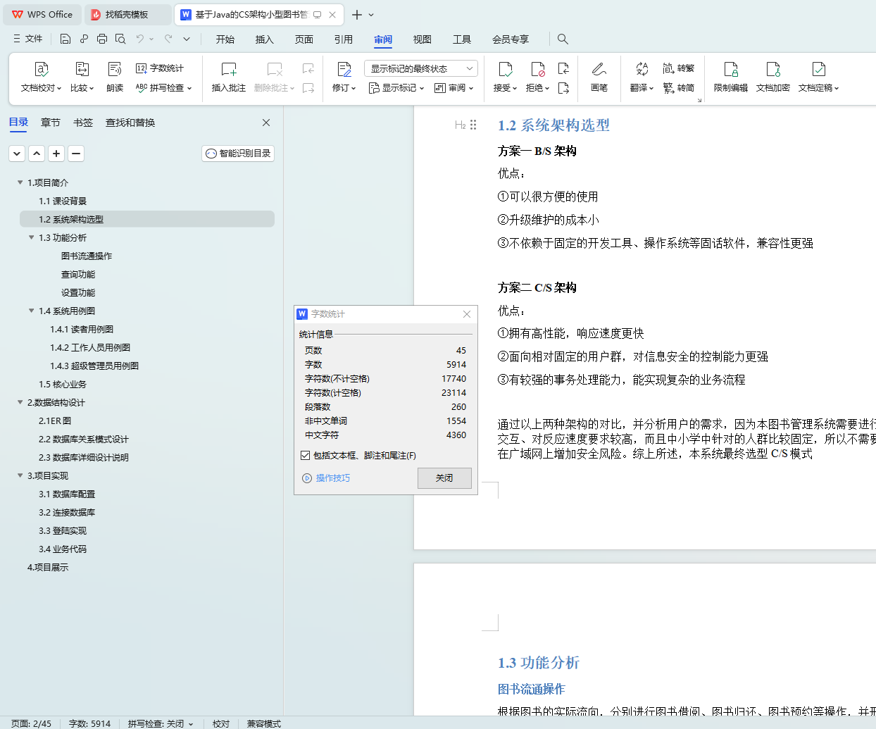 通过以上两种架构的对比,并分析用户的需求,因为本图书管理系统需要进行实时交互、对反应速度要求较高,而且中小学中针对的人群比较固定,所以不需要建立在广域网上增加安全风险。综上所述,本系统最终选型C/S模式