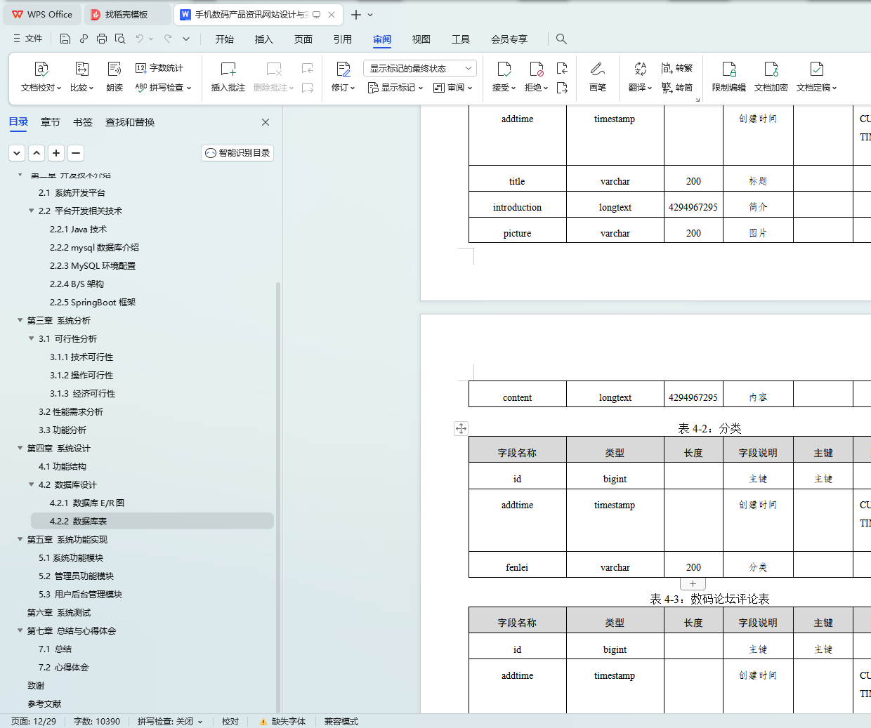 4.2.2 数据库表