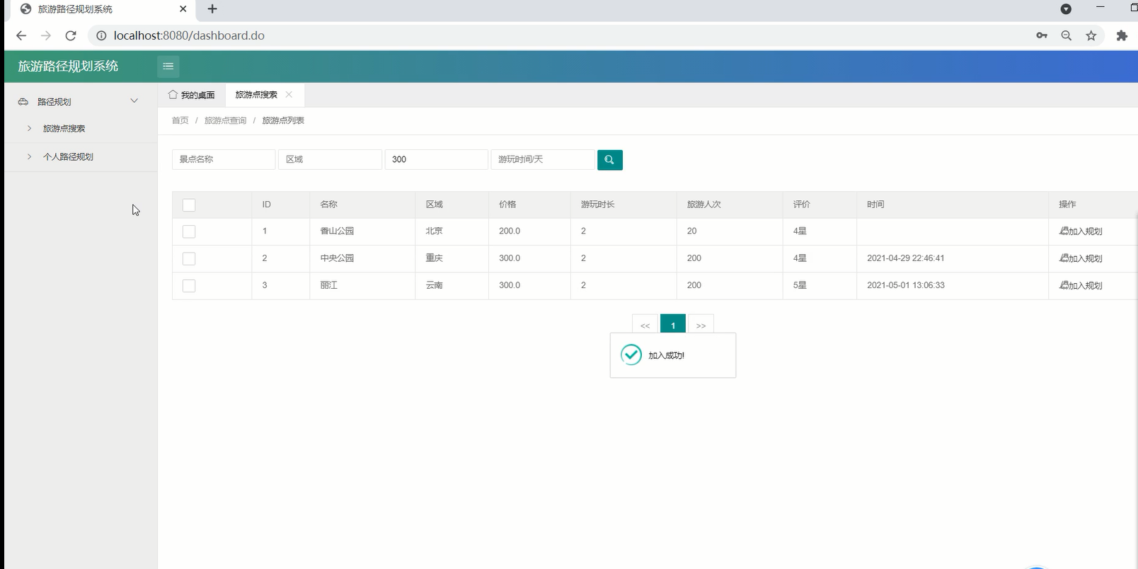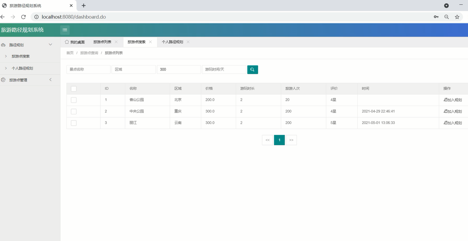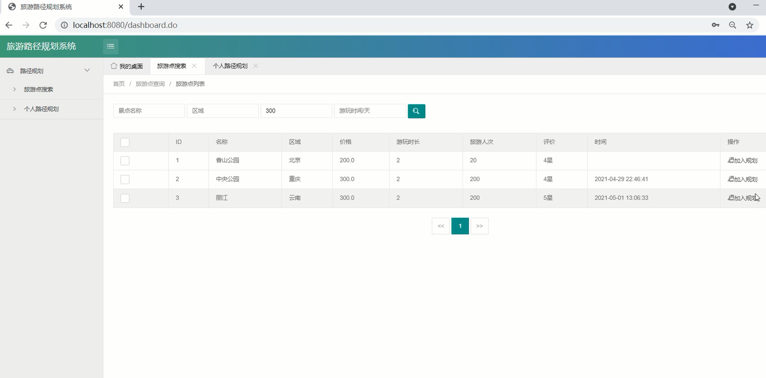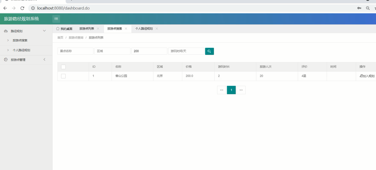 本文结合实际旅游需求开发设计了一款集合热门旅游景点的行程规划路线系统,通过综合考量旅游热门地点的满意度,景区景点开放时间以及费用,为旅行者结合实际情况提供最合适的路线规划优化旅行路线提高效率,用户可以通过系统平台登录查找和规划旅行路线。