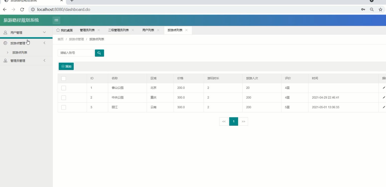 本文采用Java语言,结合Springboot以及Mysql数据库,搭建系统平台,管理员下设了二级管理员,可以进行旅游景点的管理包括新增,查看和编辑,用户可以登录到网站的平台在对应模块下搜索查看旅游路径规划,通过输入预算和具体的出行时间,系统就能反馈给用户满足条件的旅游路径及旅游地点。