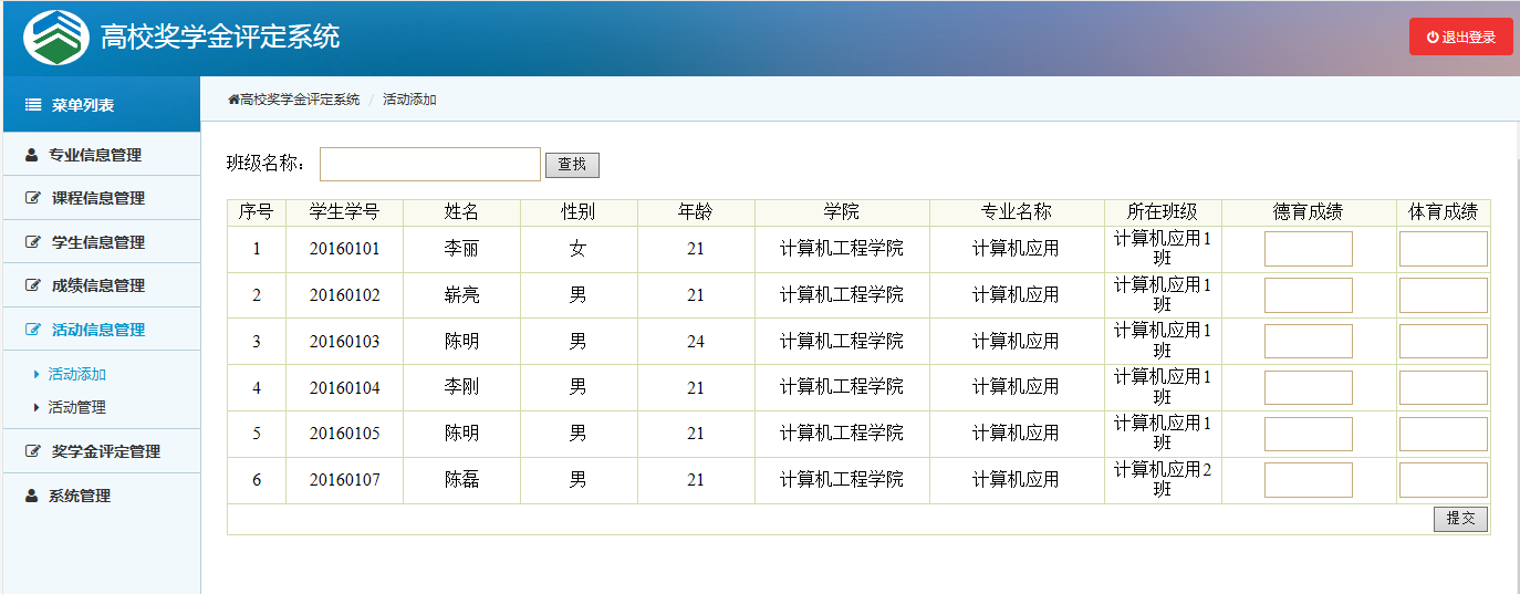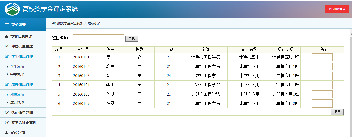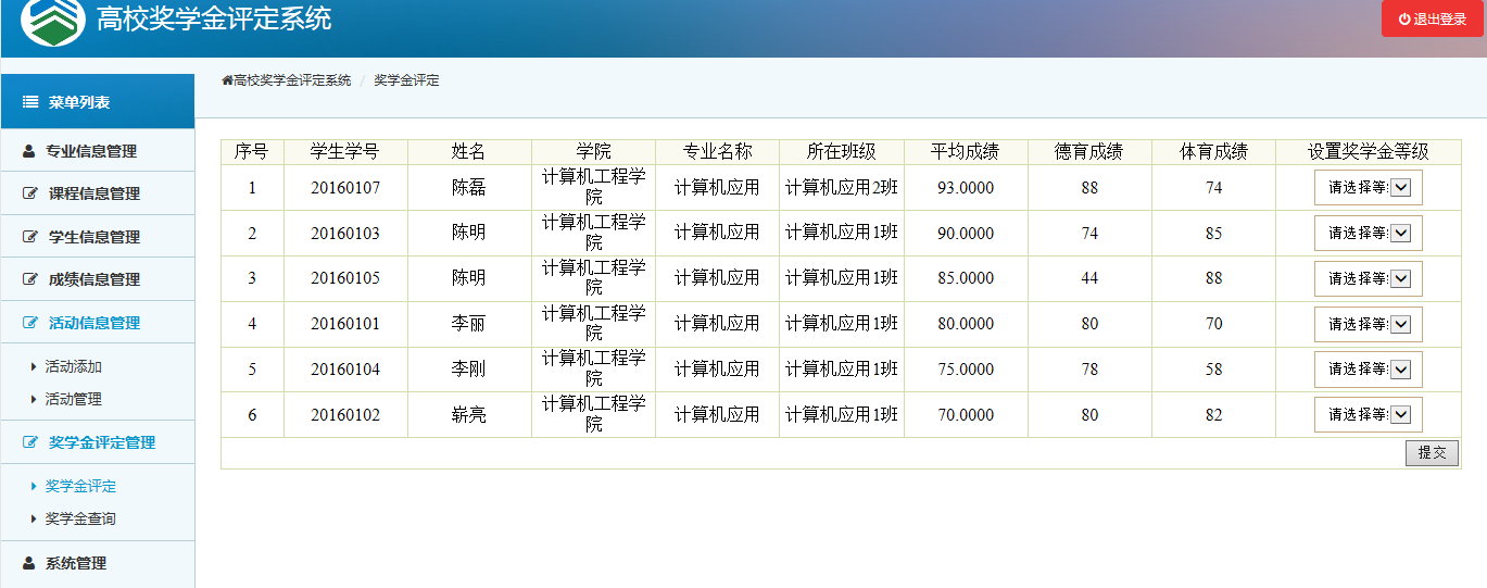 系统的开发是在Myeclipse集成开发平台完成,通过Java开发语言,并连接MySQL数据库完成对奖学金评定数据的存储和查询,采用了MVC、servlet作为框架。系统页面设计操作简单,功能齐全,实现了对高校奖学金的的综合评定和信息化管理。为了能更方便的对数据进行管理和维护,课程和活动成绩都实现了批量输入。同时奖学金评定时课程成绩和活动成绩都按照从高到低进行了排序,直观的对奖学金登记进行设置。方便了用户操作,提高了系统的性能。