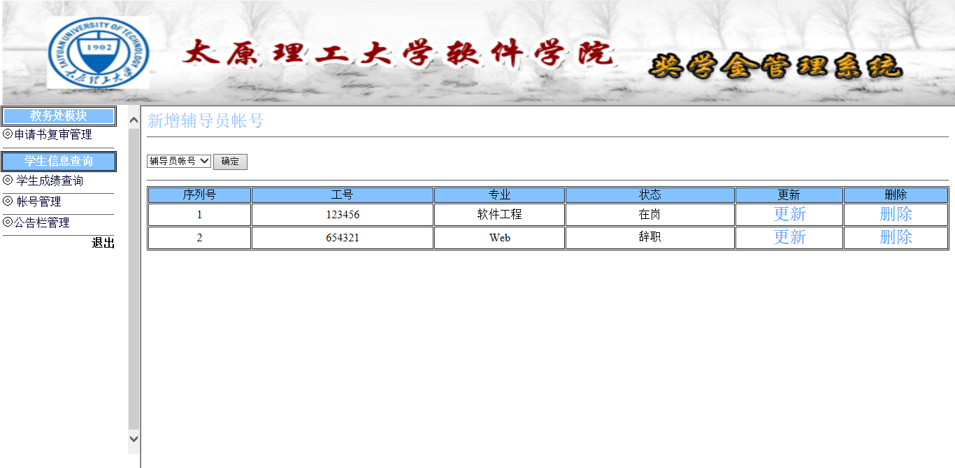 4.2.4 辅表导员管理信息