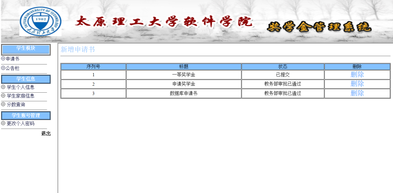 4.4.1 申请书管理界面
