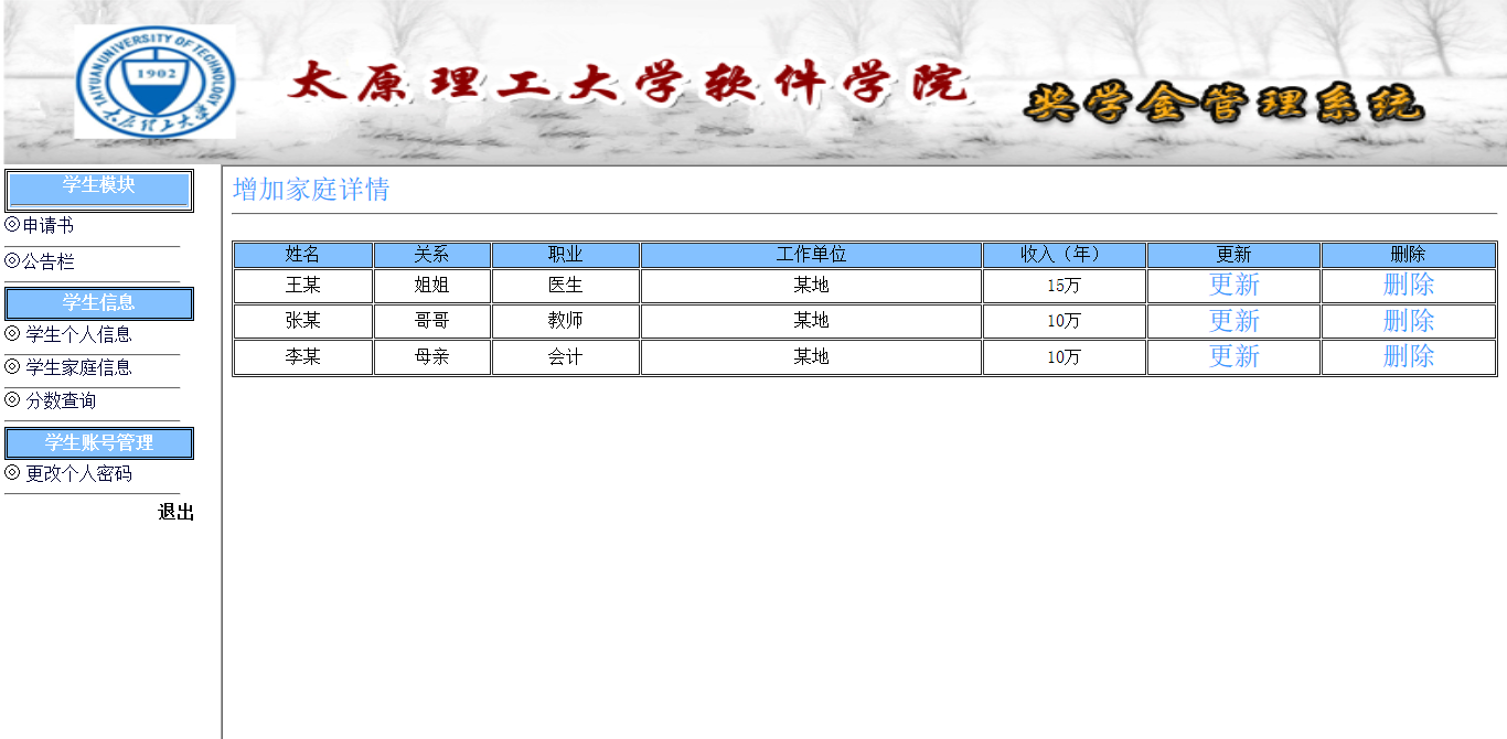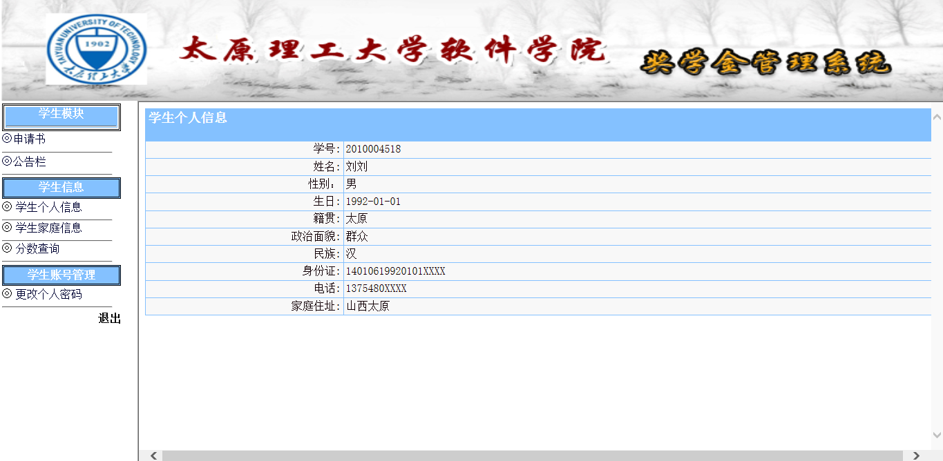 4.2.3 奖学金管理信息表