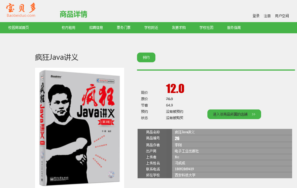 在论文中,使用面向对象的分析与设计方法详细的介绍了网站平台从设计到开发的各个步骤,包括可行性研究、需求分析、总体设计、详细设计以及系统的测试与实现等。本平台不具备商品的在线支付功能,只支持线下交易,在以后的开发和维护中,这些功能可以逐步完善。