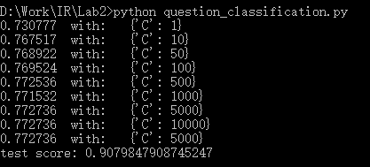 本次实验目的是对问答系统的设计与实现过程有一个全面的了解。实验主要内容包括:对给定的文本集合进行处理、建立索引;找出问题的候选答案句并排序;答案抽取,逐步调优。