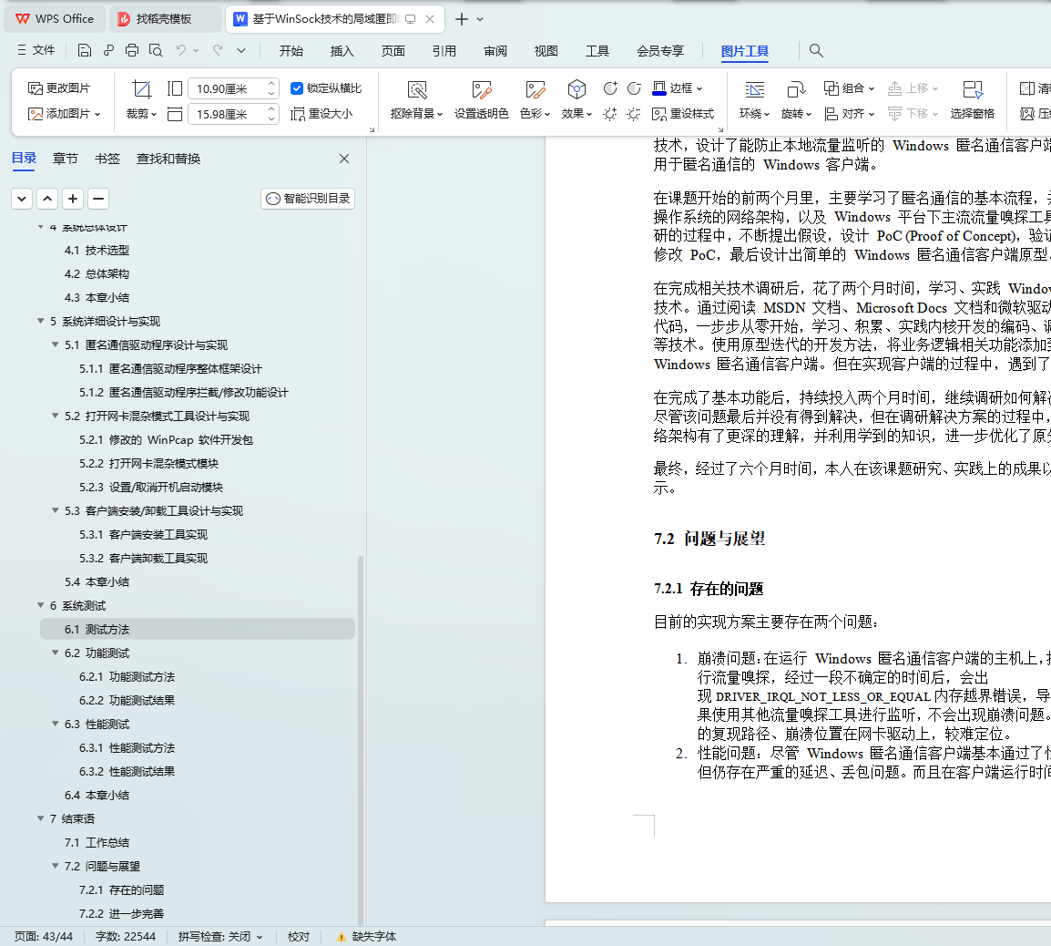 本文首先介绍了选题的背景、意义和相关技术;其次分析了系统需求,并根据需求对 Windows 匿名通信客户端进行设计与实现;再次对客户端进行功能测试和性能测试;最后总结了本课题的工作,并提出了存在的问题和对进一步完善的展望。