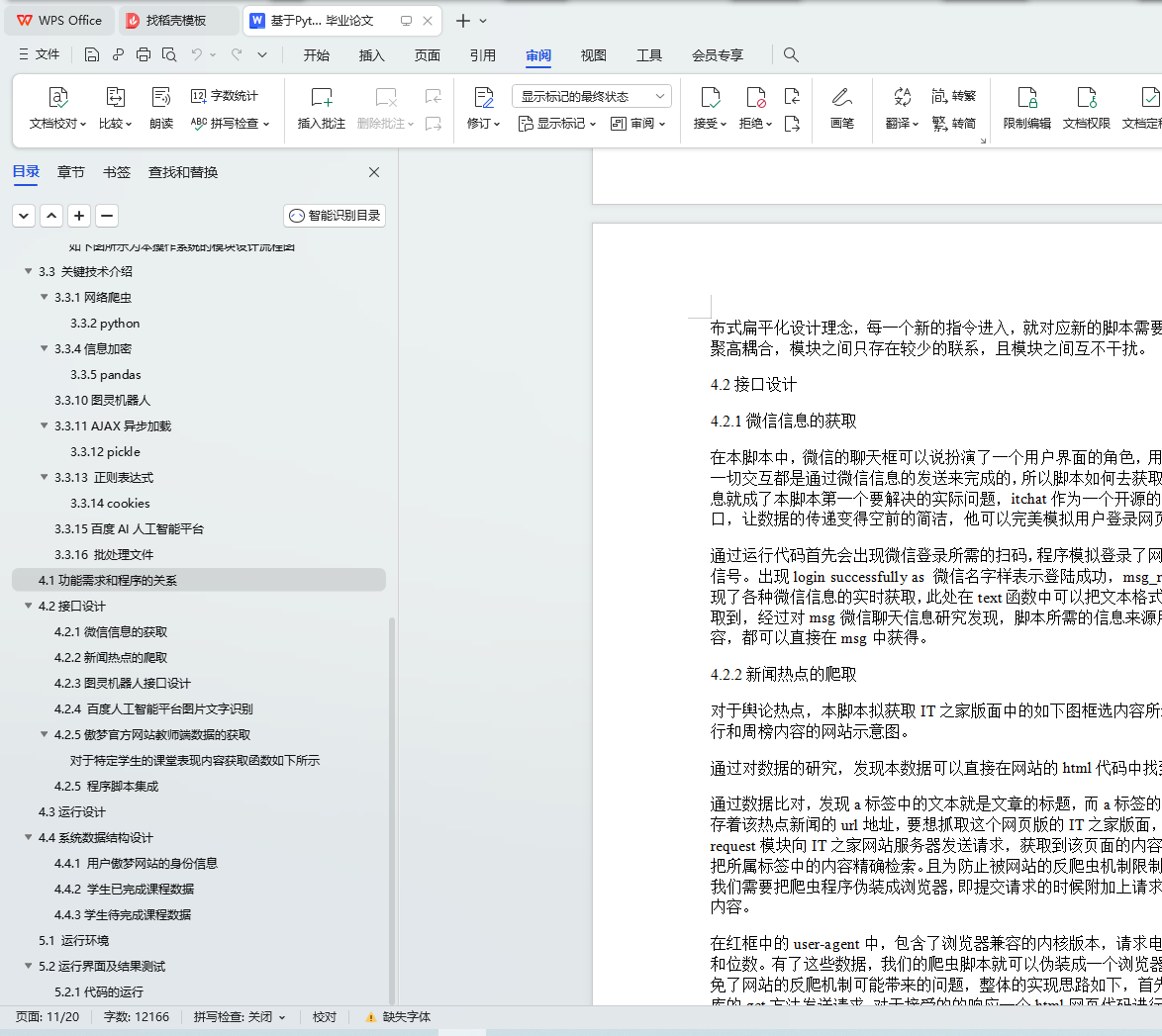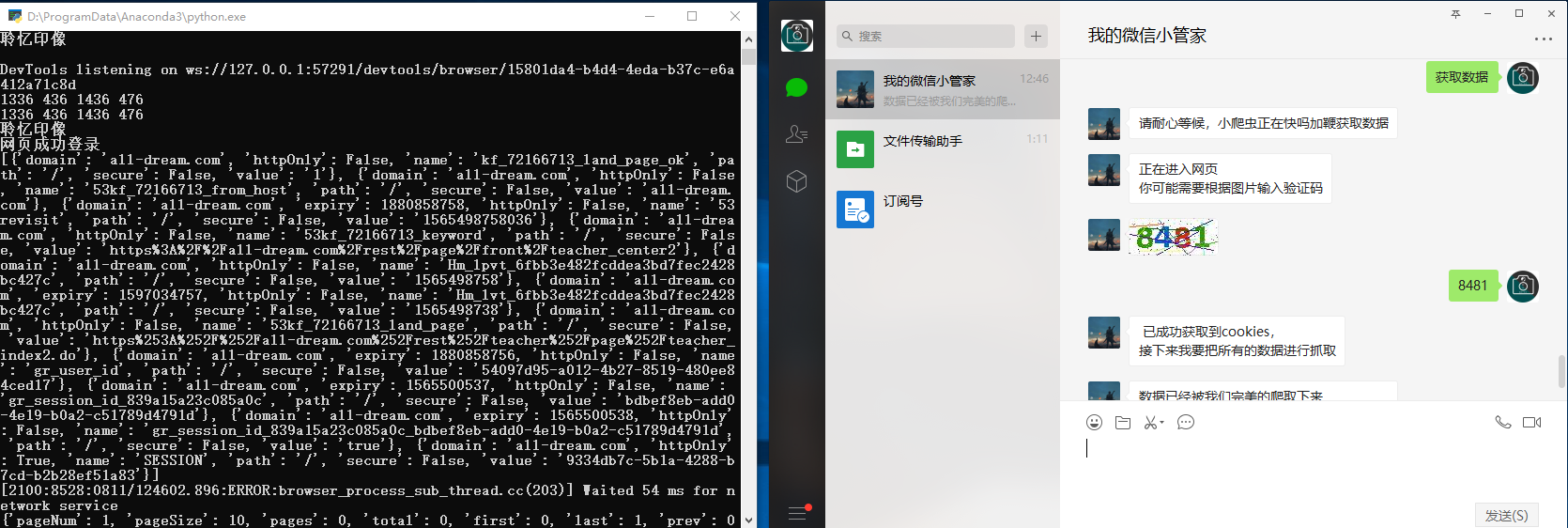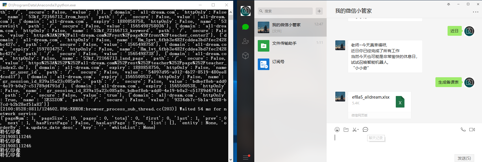 本课题研究的起因来源于现代人工作生活中的一些痛点,重复的手机软件使用以及工作数据被PC端的电脑所局限,抱着简化生活和工作内容的目的决定开发出一个简洁且不受使用限制的脚本,这一设计理念和Tim Peter 的 The Zen of Python不谋而合,而国内的应用软件中,微信无疑是和本脚本价值观及发展防线最为契合的一个。本脚本,适用于大多数的微信用户,并且对于本人公司的同事,脚本集成了更为方便的工作数据检索功能。本脚本采用python语言,因为python具有最为丰富的外接库,可以更容易解决大多数的项目功能难点。实现了网络爬虫的一些具体实例,并且把爬虫的功能封转在微信个人号之上,通过微信的聊天信息,控制爬虫流程的控制,极大的改善了网络的使用体验,改变了传统软件冗余的现状,具有极大的灵活性和实验价值