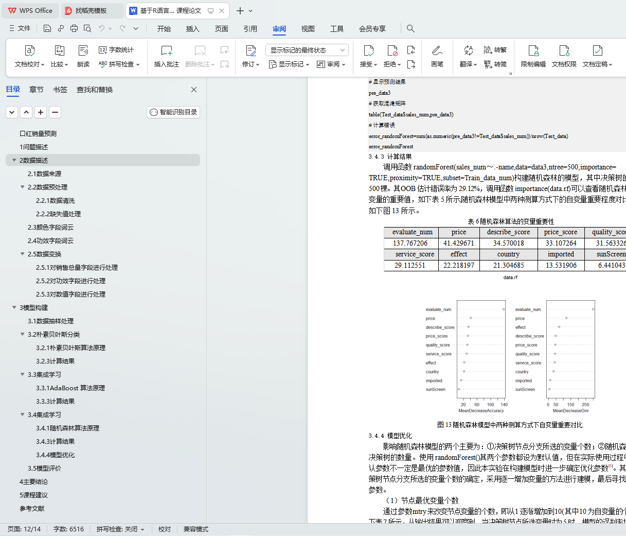行模型优化。通过实验结果表明总评价数、价格和描述分这三个因素对销售量的影响较大,对三个算法对比分析得出随机森林算法预测错误率最低,有较好的预测效果。