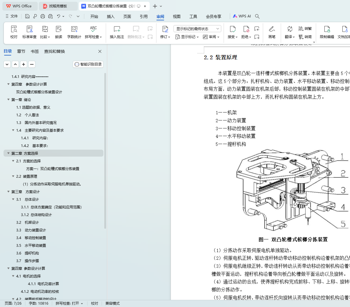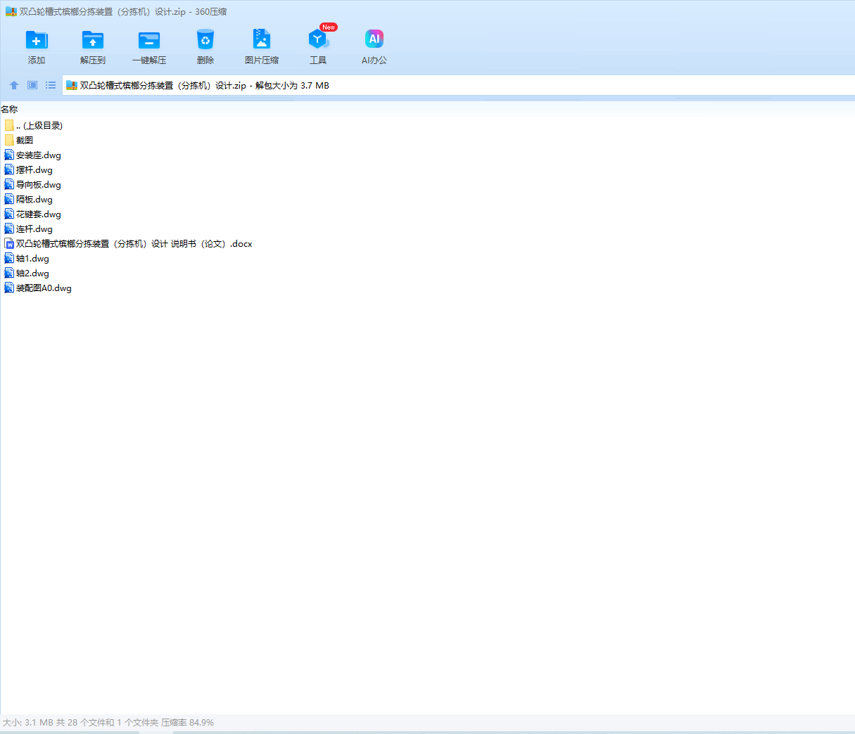 关键词:双凸轮槽式槟榔分拣装置、动力装置、提籽机构、移动控制机构、水平移动机构