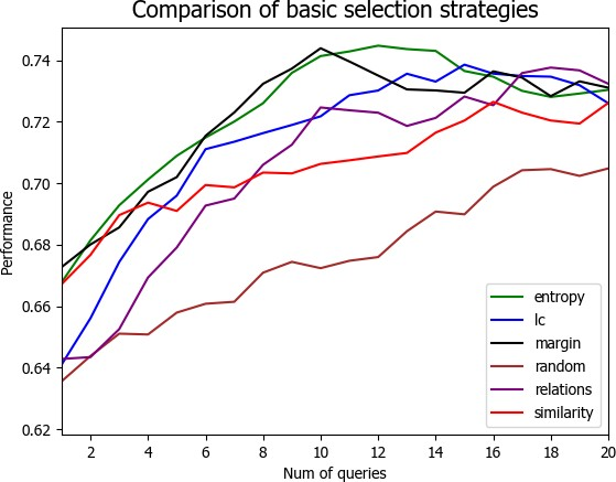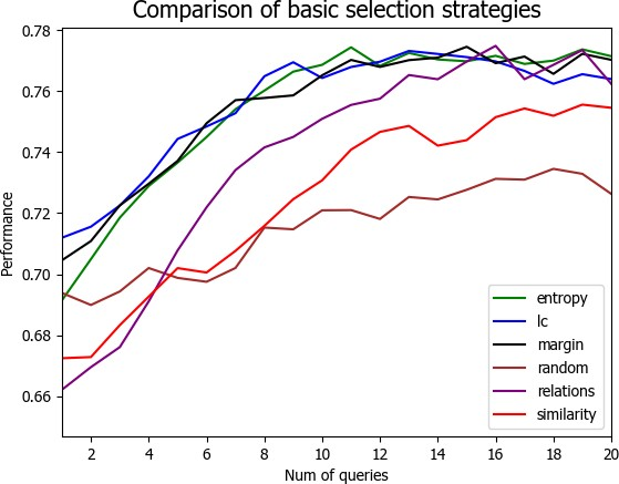 为了解决上述问题,本文以主动学习为切入点,实现了多种采样算法,主要有不确定性,多样性,代表性等算法,在验证主动学习适用于关系抽取任务的基础上,通过融合多种采样标准最终获得一个可以在多个数据集和多种学习模型下仍具有效性的主动学习样本选择策略。