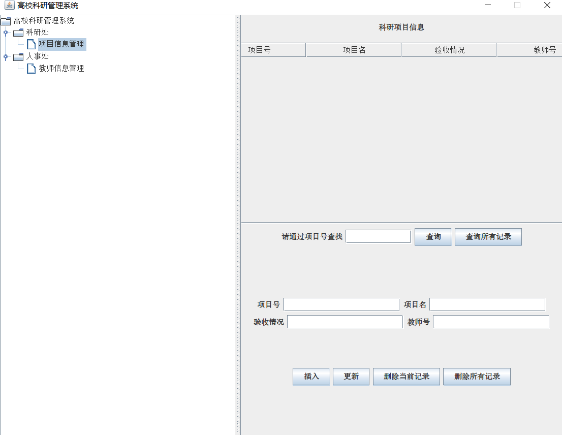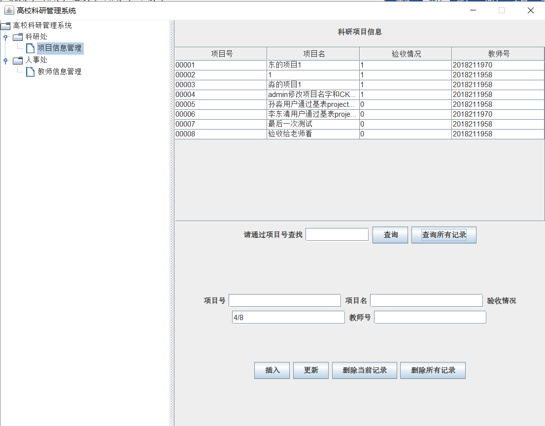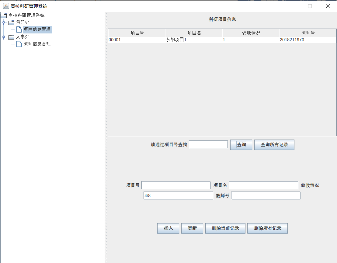 (7)创建存储过程统计个院系科研项目的申报和完成数量; (8)具有数据备份和数据恢复功能。