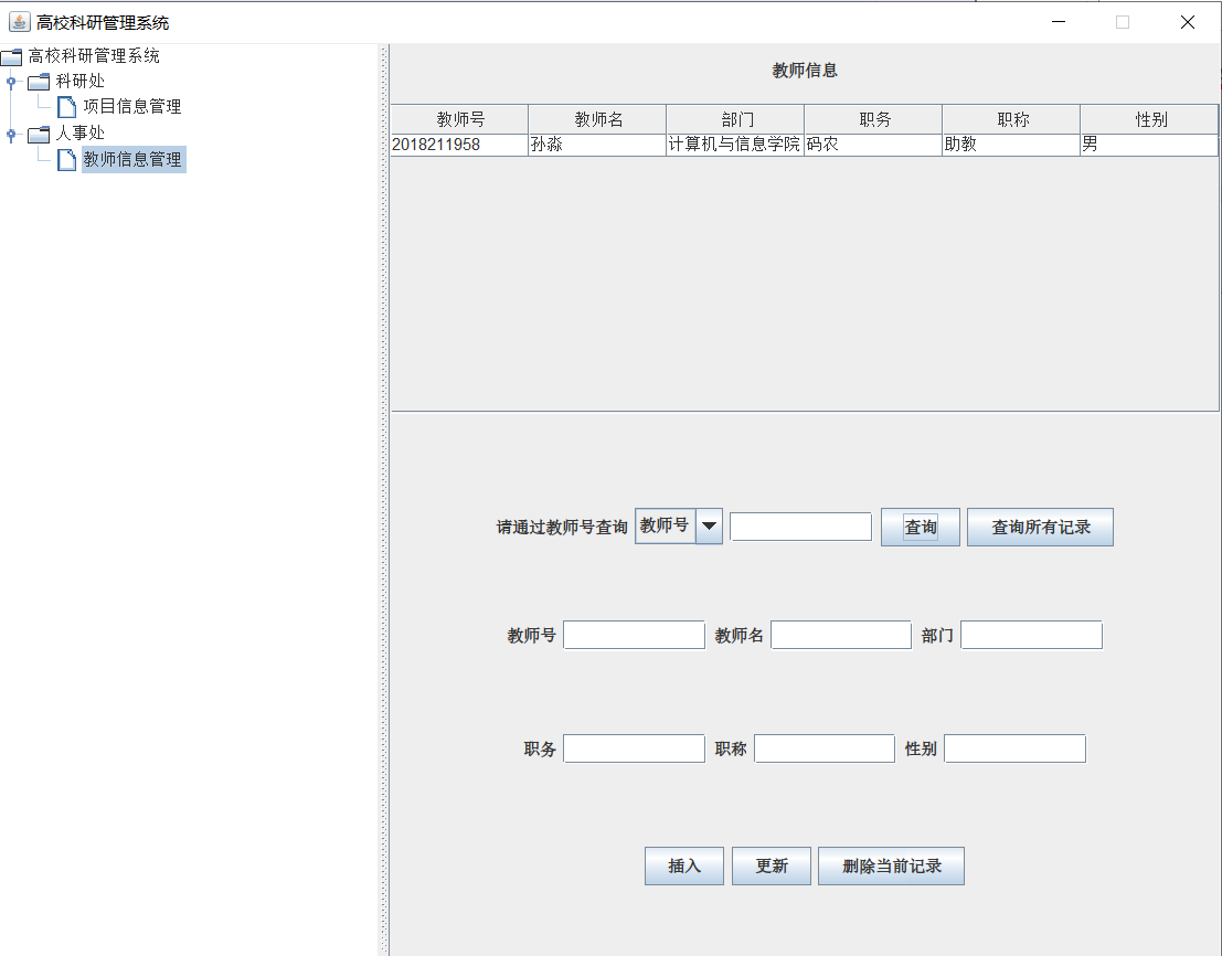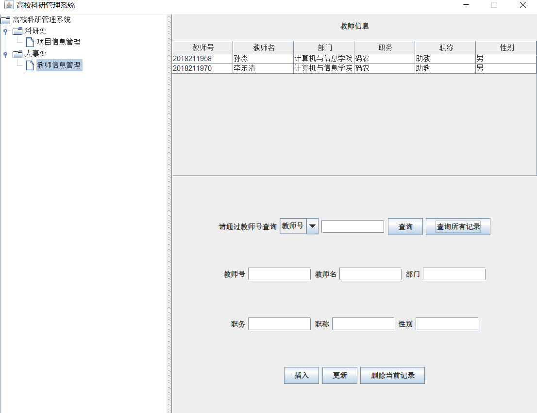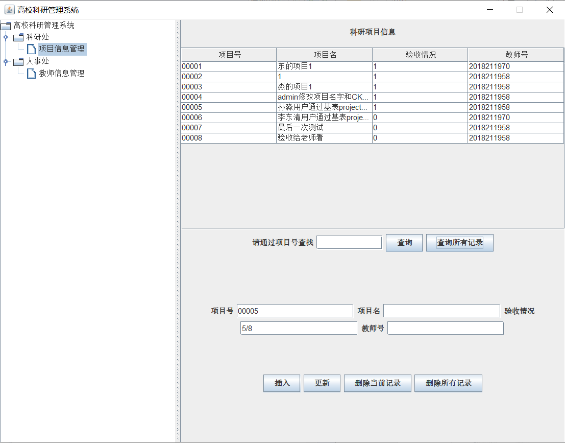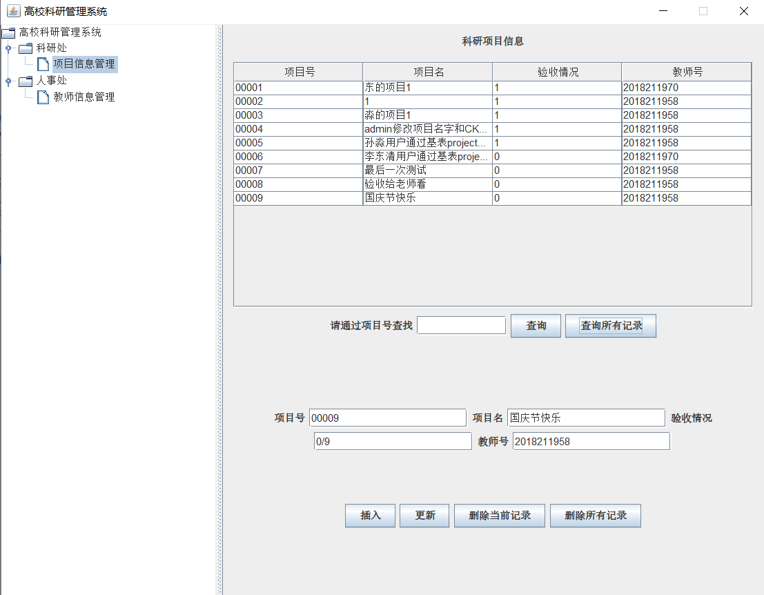 (7)创建存储过程统计个院系科研项目的申报和完成数量; (8)具有数据备份和数据恢复功能。