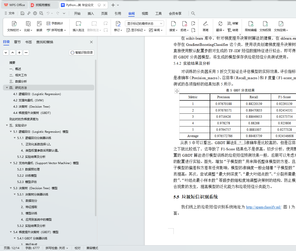5.5 垃圾短信识别系统