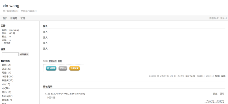 As a programmer, browsing blog website is an essential part of every day, so I designed and developed a multi-functional blog management platform with user use and administrator management. This platform is not only convenient and comfortable for users, but also easy for background managers to manage the whole platform. In a real sense, it realizes the combination of social and management.