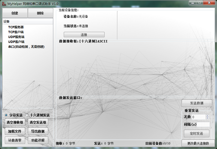 本软件基于Qt Creator编译器,C++语言开发。应用了程序设计技术、网络技术和图形化界面技术。使用了Qt封装好的Network模块和SerialPort模块。本课题的研究内容为,利用socket和串口协议编写TCP/UDP/串口的信息收发工具,以此功能为基础来达到调试设备的目的。本调试助手包括5种设备:TCP服务器设备,TCP客户端设备,UDP服务器设备,UDP客户端设备,串口设备。每个模块代表一个类型的设备。用户可创建多个类型的设备或者创建同一类型的多个设备。每种类型设备均可进行数据的收发。在发送数据时可设置数据格式为ASCII或Hex数据,支持单次发送和定时多次发送。支持数据文件导出等功能。TCP服务器用采用多线程来连接客户端。本软件的亮点在于集成了TCP,UDP,串口的调试功能,可提高学习和工作的效率。使本软件的面向群体更加广泛。通过测试,本软件界面美观,操作简单,功能模块一目了然,运行也比较稳定,可以广泛使用。