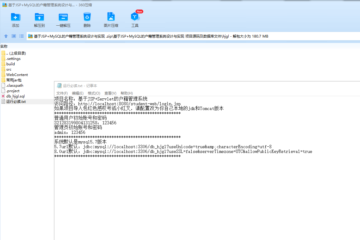 户籍是记录人口的身份信息的一种文本,户籍所在地指的是我国户口簿登记的地方,通常出生时父母在哪里居住,户籍也就在哪里,目前中国大陆实行的是户口本,将户口分为农业户口和非农业户口,户口与我们的生活息息相关,对我们的子女的升学、就业、社会保障、居住权、看病就医有着非常直接的影响,后来随着社会的发展,国家把户口统一变为居民户口,但是虽然名义上变了,但实际上区别还是有的,在以前,人们通过户口簿来登记人口的信息,但是非常不方便,为了解决这一难题,决定开发一款基于PC端的户籍管理系统,采用Java语言开发,JSP+Servlet技术,MySQL作为数据库的存储管理工具,来实现对人们户籍的信息化管理。
