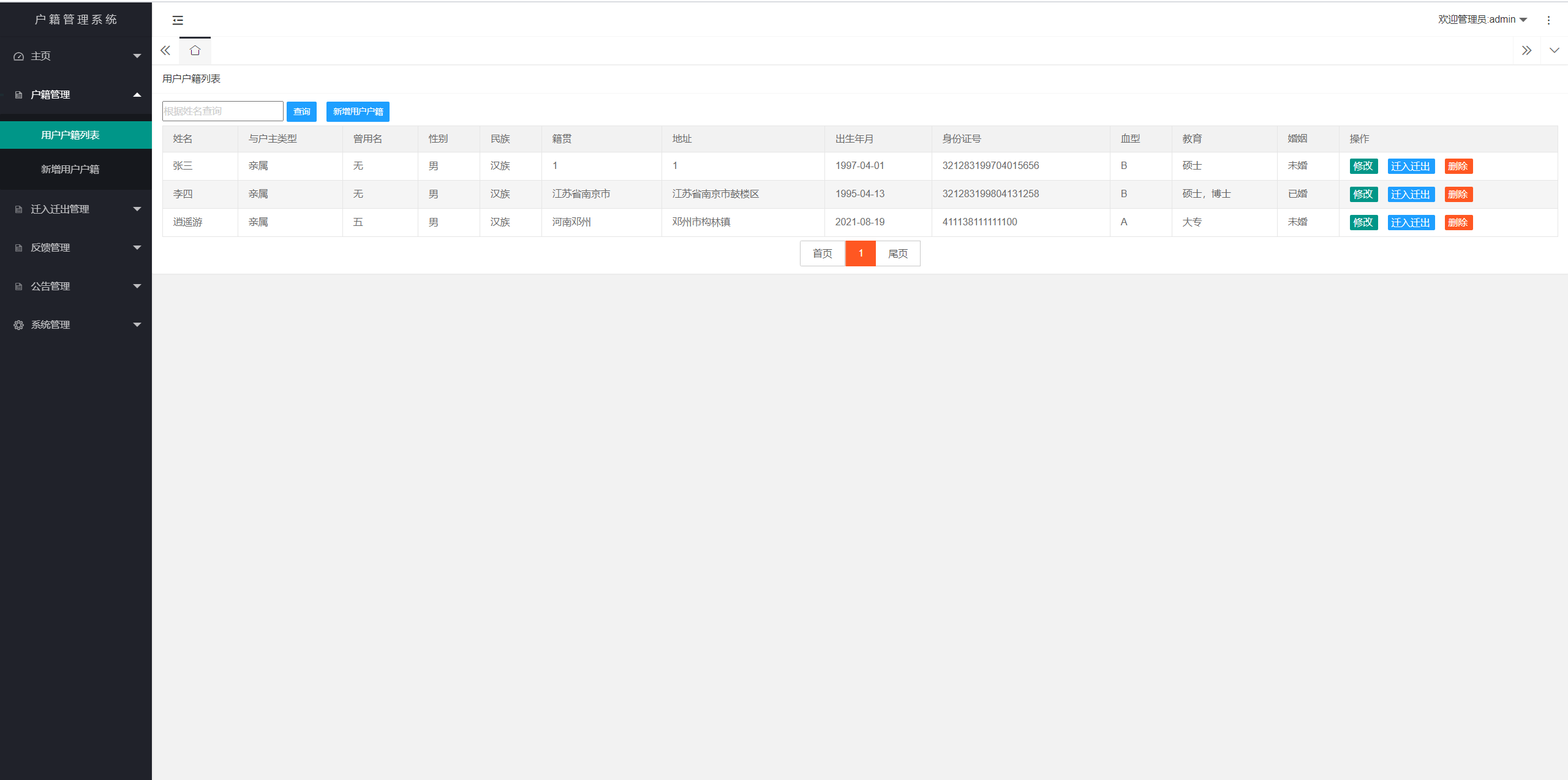 5.2.1 用户户籍列表