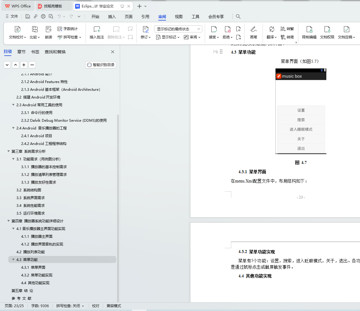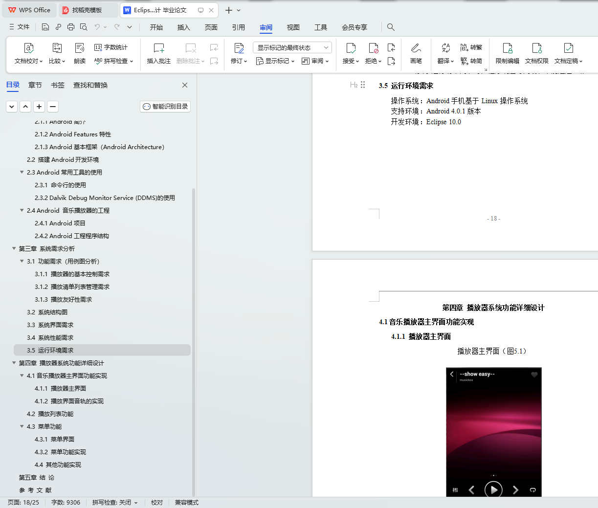 当今社会的生活节奏越来越快+Android系统上一的款音乐播放器应用程序的设计与实现进行讨论。Android是一个开源的系统,它底层是基于Linux的操作系统,本论文的音乐播放器采用了Android开源系统技术,利用Java语言和Eclipse编辑工具对播放器进行编写。同时给出了详细的系统设计过程、部分界面图及主要功能运行流程图,本文还对高度过程中遇到的问题和解决方法进行了详细的讨论,该音乐播放器集播放、暂停、停止、上一首、下一首、音量调节、歌词显示等功能于一体,性能良好,在Android系统中能独立运行。该播放器还拥有对手机文件浏览器的访问功能、歌曲播放模式、以及歌词开闭状态的友好设置.MP3的全名是MPEG Audio Layer-3,是一种声音文件的压缩格式,由于本播放器只限于应用层程序的探讨,所以对具体的压缩算法不作深究。